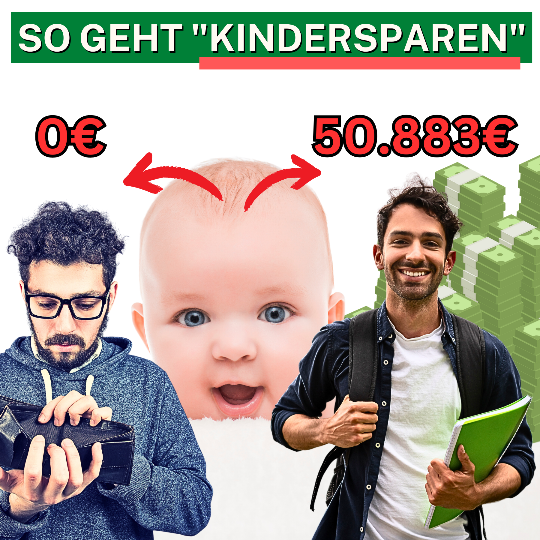 Schau mal, dein Mini-Mensch kann entweder mit 0 Euro, sage und schreibe 50.883 Euro nach 18 Jahren oder sogar 187.400 Euro nach 25 Jahren ins Abenteuer Leben starten! 🚀👶💰