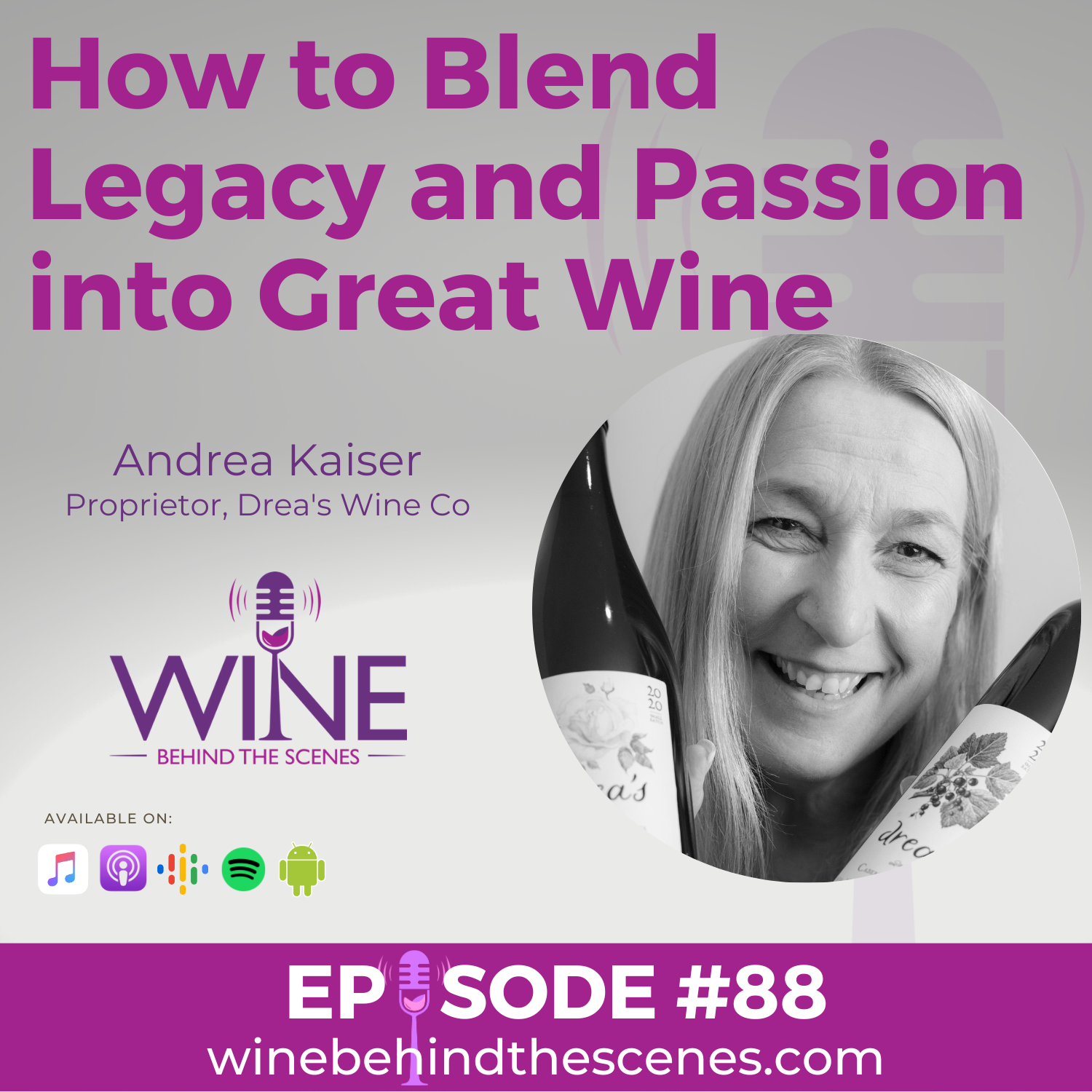 In this episode of Wine Behind the Scenes, Laurel Simmons is joined by Andrea Kaiser, founder of Drea's Wine Co. and daughter of the legendary winemaker Karl J. Kaiser, co-founder of Inniskillin Wines. Andrea shares her incredible journey, from growing up in the vineyards of Niagara-on-the-Lake to launching her own boutique label in tribute to her father.