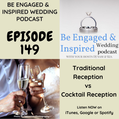 Be Engaged and Inspired Wedding Podcast Episode 149: Traditional Reception vs Cocktail Reception