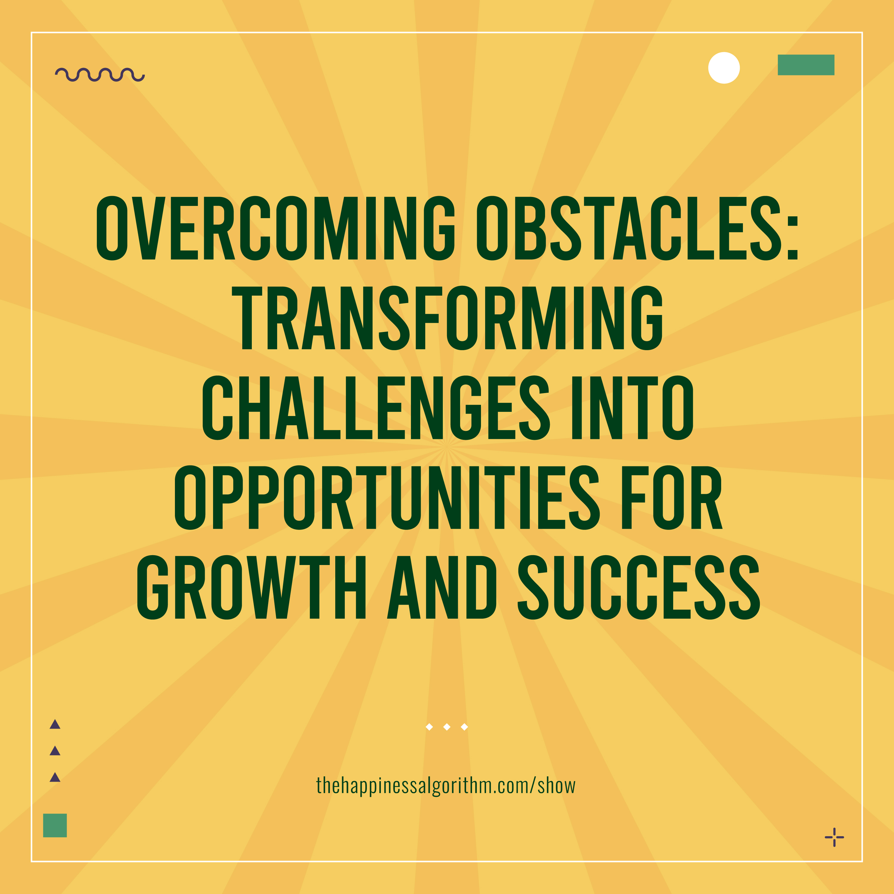 In today's episode, hosts Deb Turton and Guy Daigneault discuss obstacles and how the challenges we face in life are opportunities for us to learn and improve. Find out why positivity is crucial to overcoming obstacles and why things always feel harder before we've faced them and not so bad when you look in the rear view mirror.