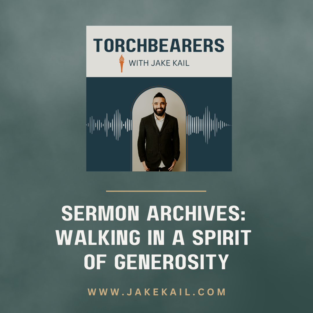 This episode features one of Jake's sermons from 2019 on walking in a spirit of generosity. Growing in selflessness and generosity are marks of maturity in Christ, and Jesus said that it is more blessed to give than to receive. But living a life of generosity will not happen by accident; it takes planning and intentional action. Commit to being a person that God can use to bless others and take steps to be a person who loves to give!