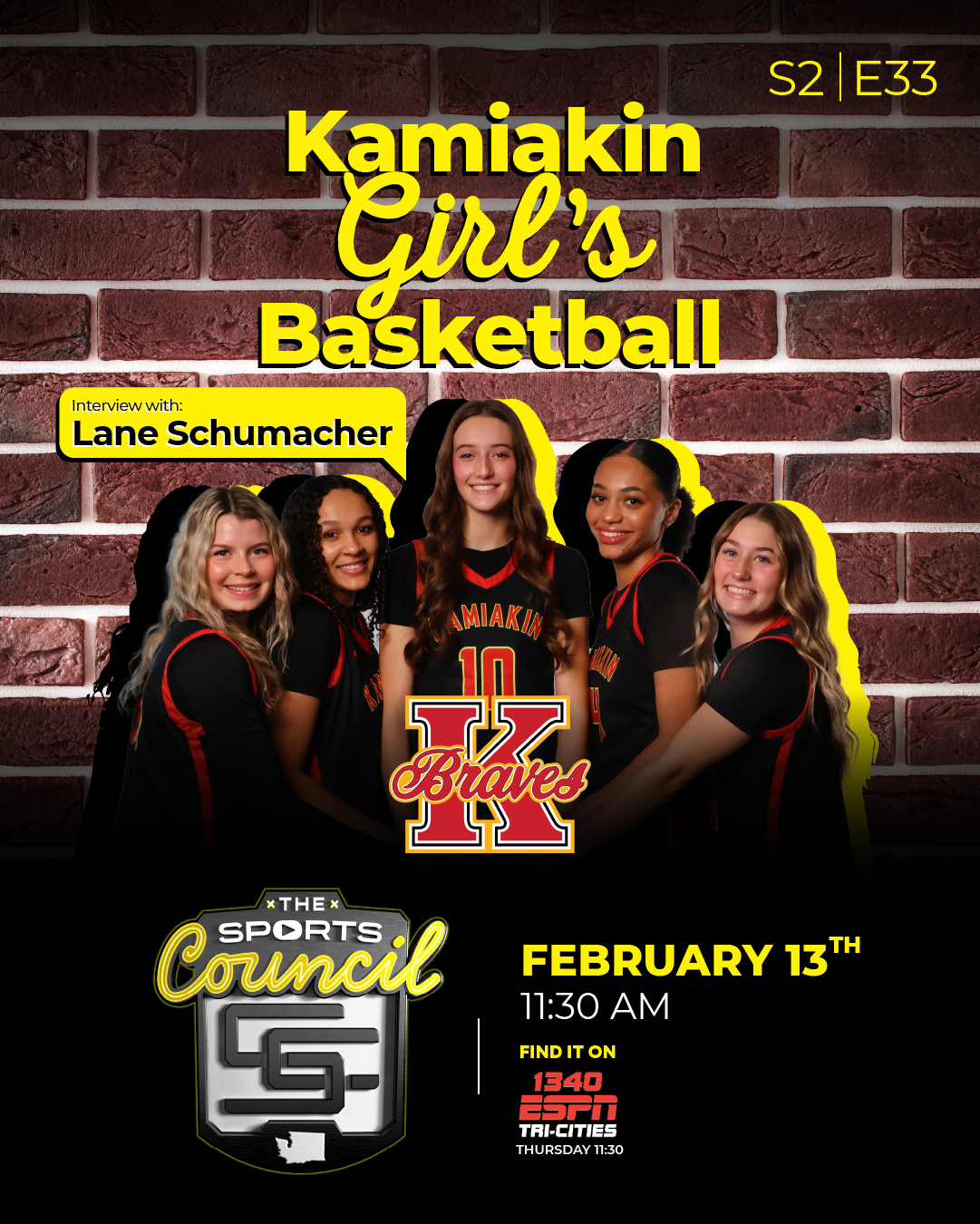 Kamiakin Girls Basketball claimed the MCC title and made it to the Tacoma Dome the past two seasons. However, with there being only two state bids and a lot of talent in the district, it's an uphill battle for the Braves as they start the playoffs tonight at home. Jamie Council catches up with Lane Schumacher, now in his 13th season as head coach for the Braves.