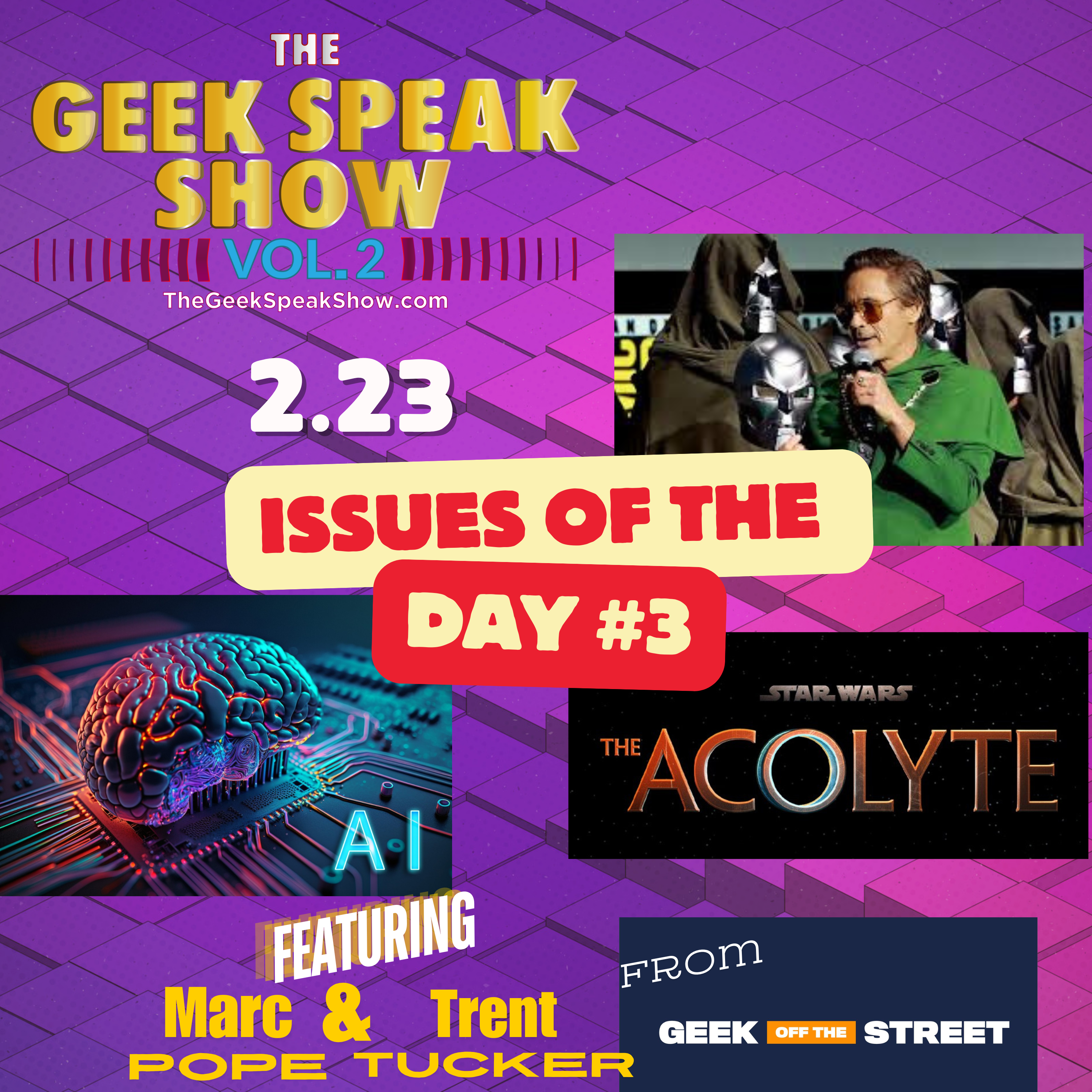 This week, it's this month's Issues of the Week episode! Henry, along with returning guests Marc Pope & Trent Tucker (hosts of the Geek Off The Street podcast), discuss several issues in Geek Culture, including the return of RDJ to the MCU, The Acolyte and toxic fandoms, and AI still threatening to take away actors' opportunities in favor of generated voices.