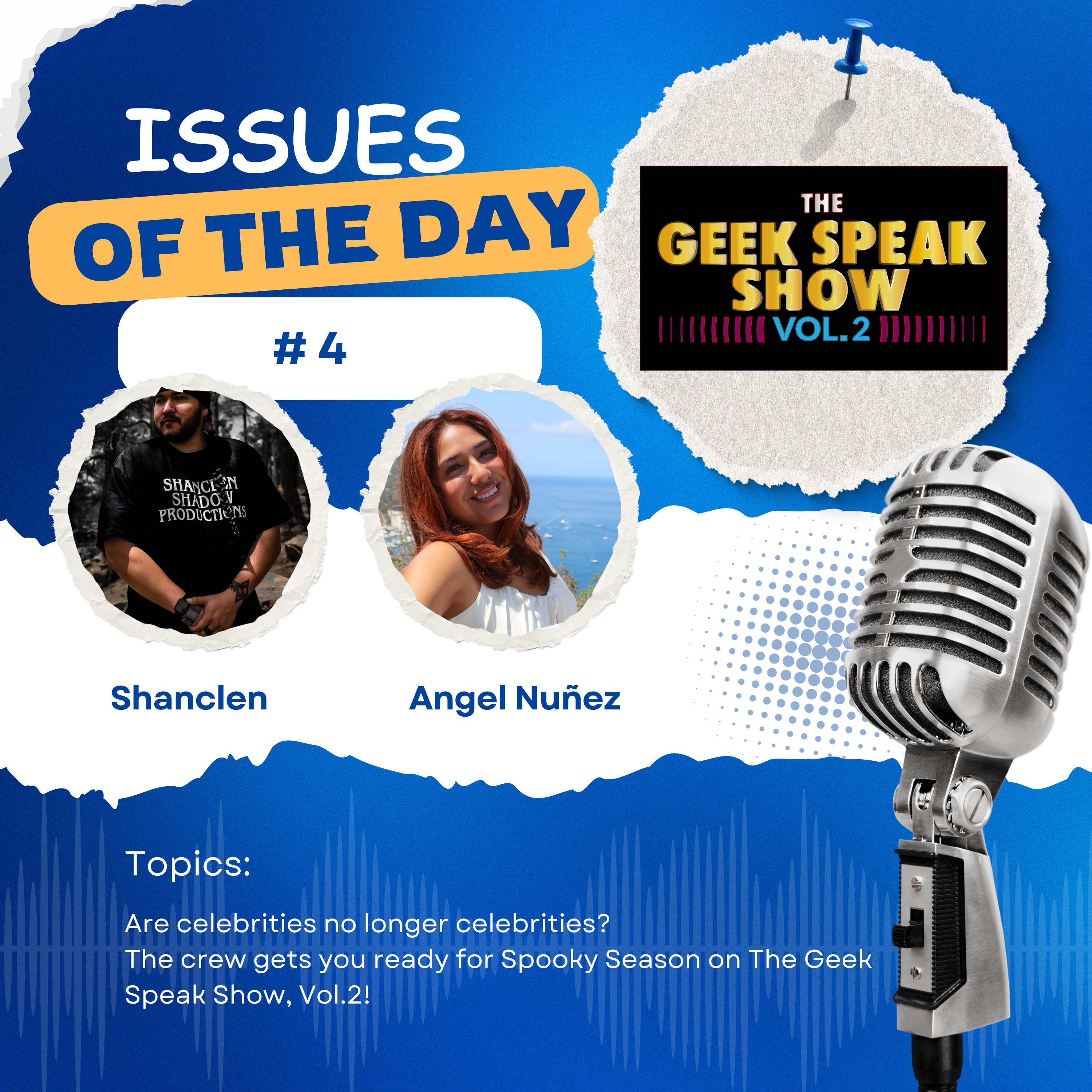 For this Issues of the Day episode, the whole Geek Speak team assembles! Shanclen & Angel Nuñez join Henry to talk about the Jason Momoa story from last week's Navajo Nerdy News, which leads to a discusion about holding celebrities to a higher standard and whether celebrities are even celebrities anymore. What with anyone becoming famous on social media. Then, as it's officially Fall now, the team gives a taste of what the Geek Speak Treats and the Halloween episode will sound like in October.
