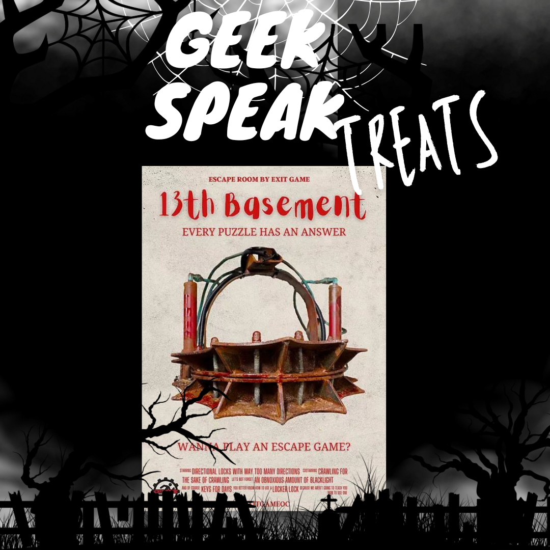 A new Geek Speak Treats episode with Christine Barger-Lutes & Jeremiah Lutes, the founders & operators of Exit Game OC. They talk about their love of escape games and how that led them to start their own company and design their own room, 13th Basement.