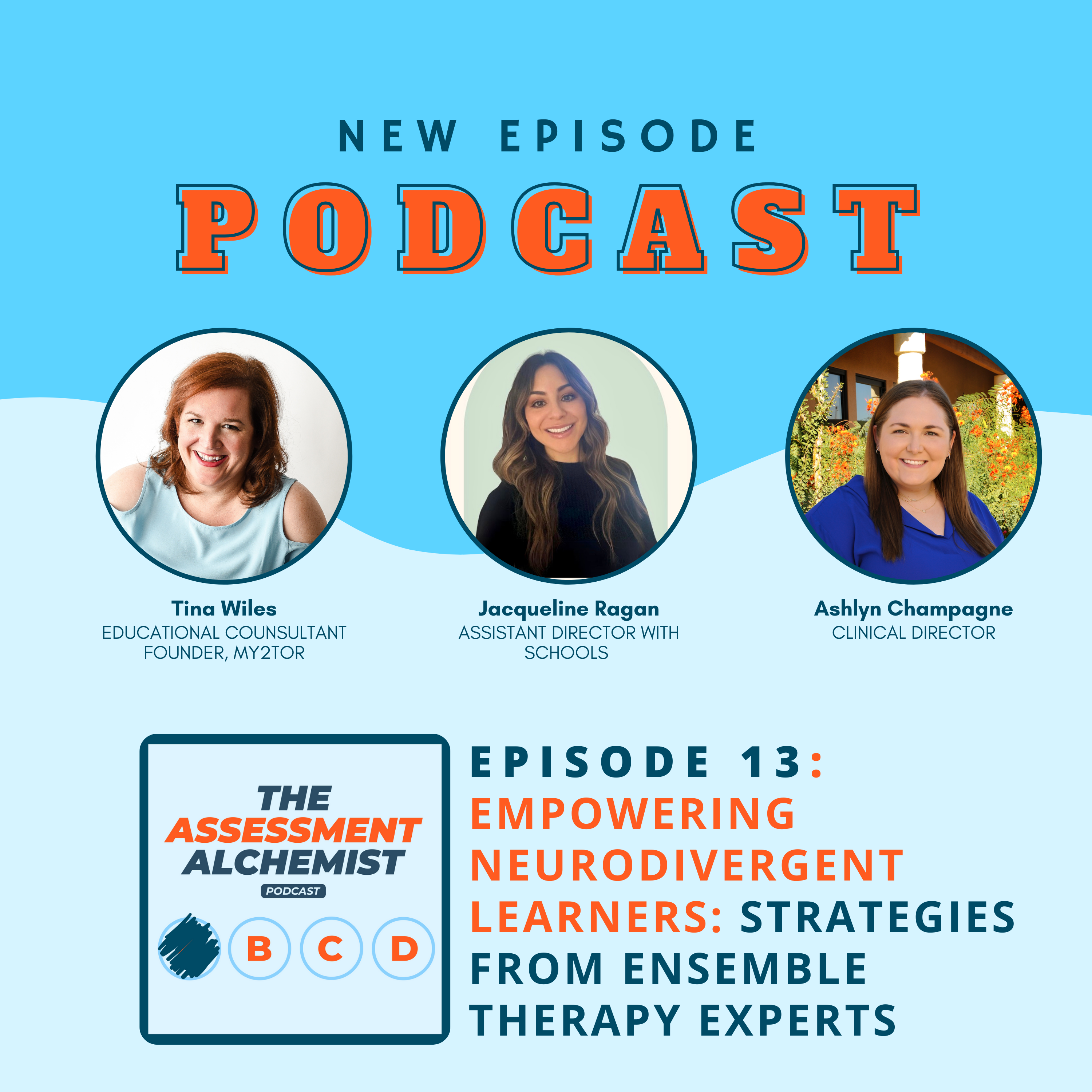 Welcome to another transformative episode of The Assessment Alchemist, where we turn the daunting task of test preparation into an empowering journey for both educators and students. In this titled “Empowering Neurodivergent Learners: Strategies from Ensemble Therapy Experts”, Tina welcomes Jacqueline Ragan and Ashlyn Champagne from Ensemble Therapy Services to explore empowering strategies for supporting neurodivergent students. The discussion provides deep insights into creating inclusive educational environments, the importance of tailored interventions, and practical advice for educators and parents. Whether you’re dealing with ADHD, autism, or other neurodivergent conditions, this episode offers expert strategies to help students succeed academically and personally by transforming educational challenges into opportunities for growth. Join us for an enlightening conversation that bridges the gap between neurodivergence and educational success.