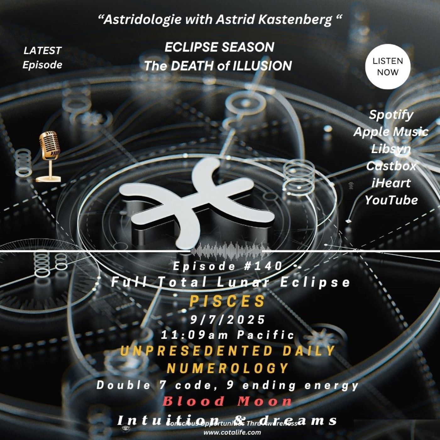 Eclipse season is here with the arrival of the Full total Lunar Eclipse moon in Pisces. The numerology starting on the day of the full moon is nothing short of amazing. We have double 7 and double 9 energy as well as each day adding up to its own number. The next six months of eclipse energy is an important time of shift, release, renewal, and completion.