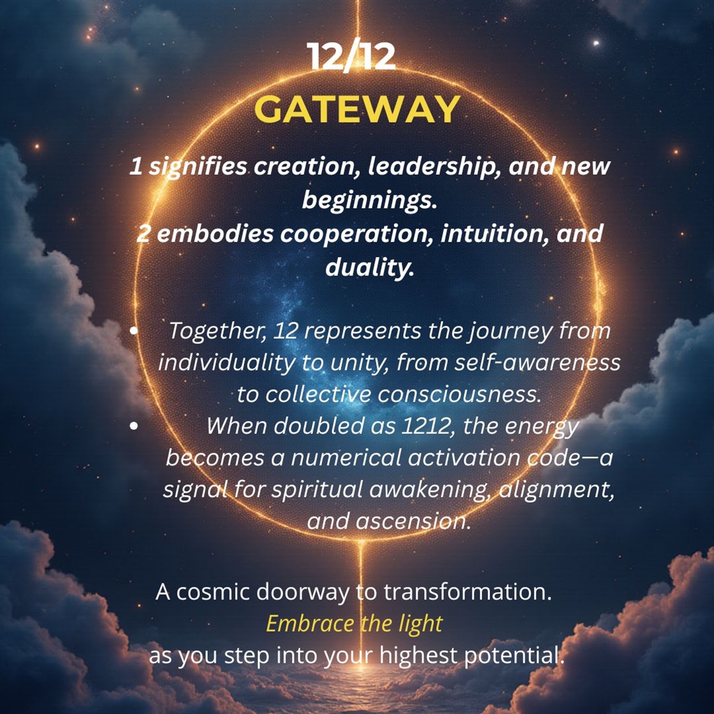 The 1212 portal is always an exciting time. Occurring in the month of December amidst the anticipated holidays and the Winter Solstice. This is a time of spiritual connection and reviewing what worked, what didn't and what you now want.