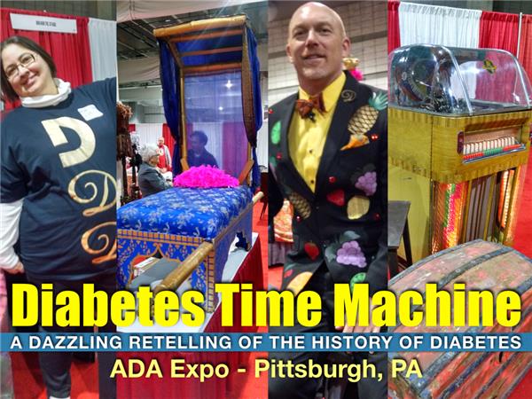 This year marks Divabetic’s eighth consecutive appearance at the ADA Expo in Pittsburgh, PA. To celebrate Mr. Divabetic presents the dazzling retelling of the history of daibetes entilted "the Diabetes Time Machine" From the origins of its discovery to the dramatic breakthrough in its treatments, this in-depth look at the history of diabetes is sure to educate, enlighten and entertain you. Guests include: “Diabetes Time Travelers”: Lorraine Starsky RN, BSN, Jan Koshinsky RN, MS, CDE, Connie Frazier RD, LDN, CDE, Lori Bednarz MSN, CDE, Sue Cleveland MS, RD, Terri Seidman, Poet Lorraine Brooks and Mama Rose Marie. Nine famous ‘Divabetics’ help to bring to life the dazzling history of diabetes including Cleopatra, writer Laura Ingalls Wilder, movie star, Mae West, jazz singer Ella Fitzgerald, TV icon, Mary Tyler Moore, entertainer Miss Piggy, R & B legend, Patti Labelle, LPGA professional golfer Michelle McGan and Supreme Court Justice, Sonia Sotomayor. Whether or not you are aware of the history of diabetes including the discoveries or innovators responsible for many of today’s treatment advances, these forces have had a hand in shaping your daily self-care practices. The knowledge you gain from this presentation can help you to appreciate the methods and treatments available today and hopefully motivate you to take advantage of them!