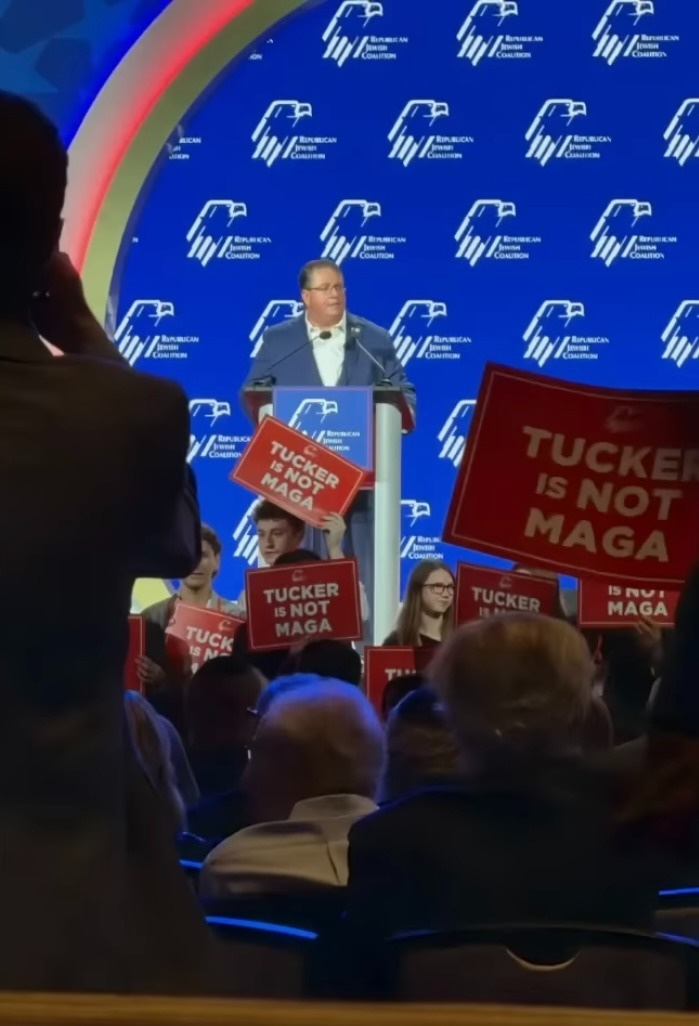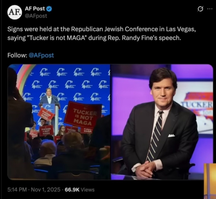 (35:25) PIC signage at Republican conference saying "Tucker is not MAGA"