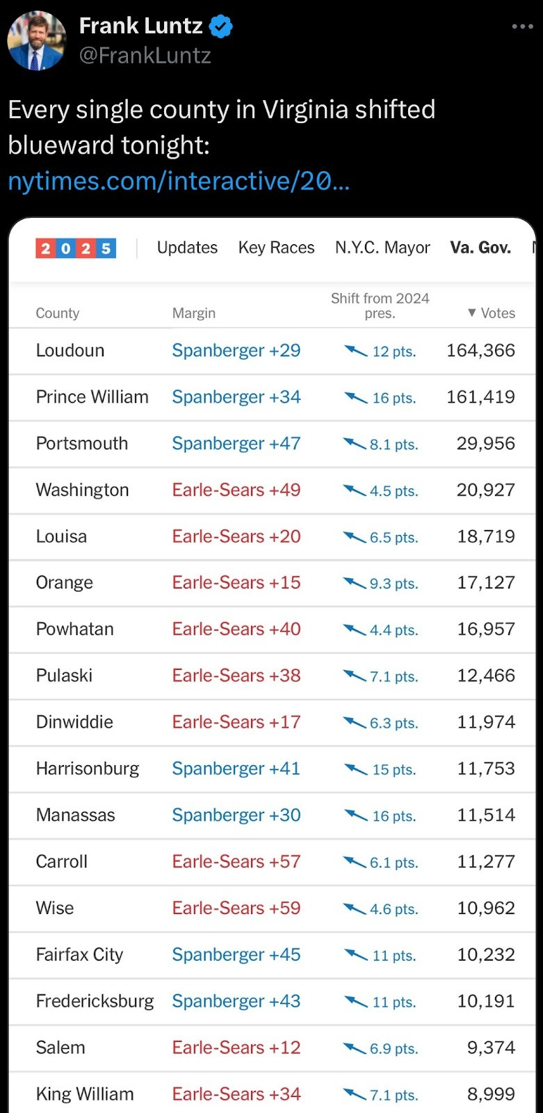 (49:07) PIC Republican pollster Frank Luntz admits every county in Virginia shifted to Democrats