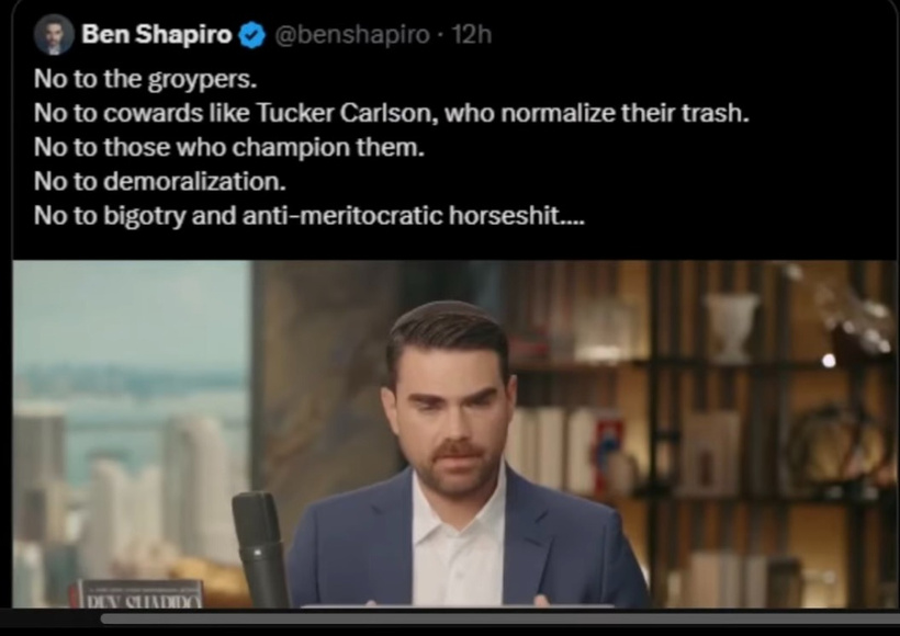 (13:53) ARTICLE The Hill - Ben Shapiro, Mark Levin torch Tucker Carlson for Fuentes interview https://thehill.com/video/ben-shapiro-mark-levin-torch-tucker-carlson-for-fuentes-interview-rising/11248536/