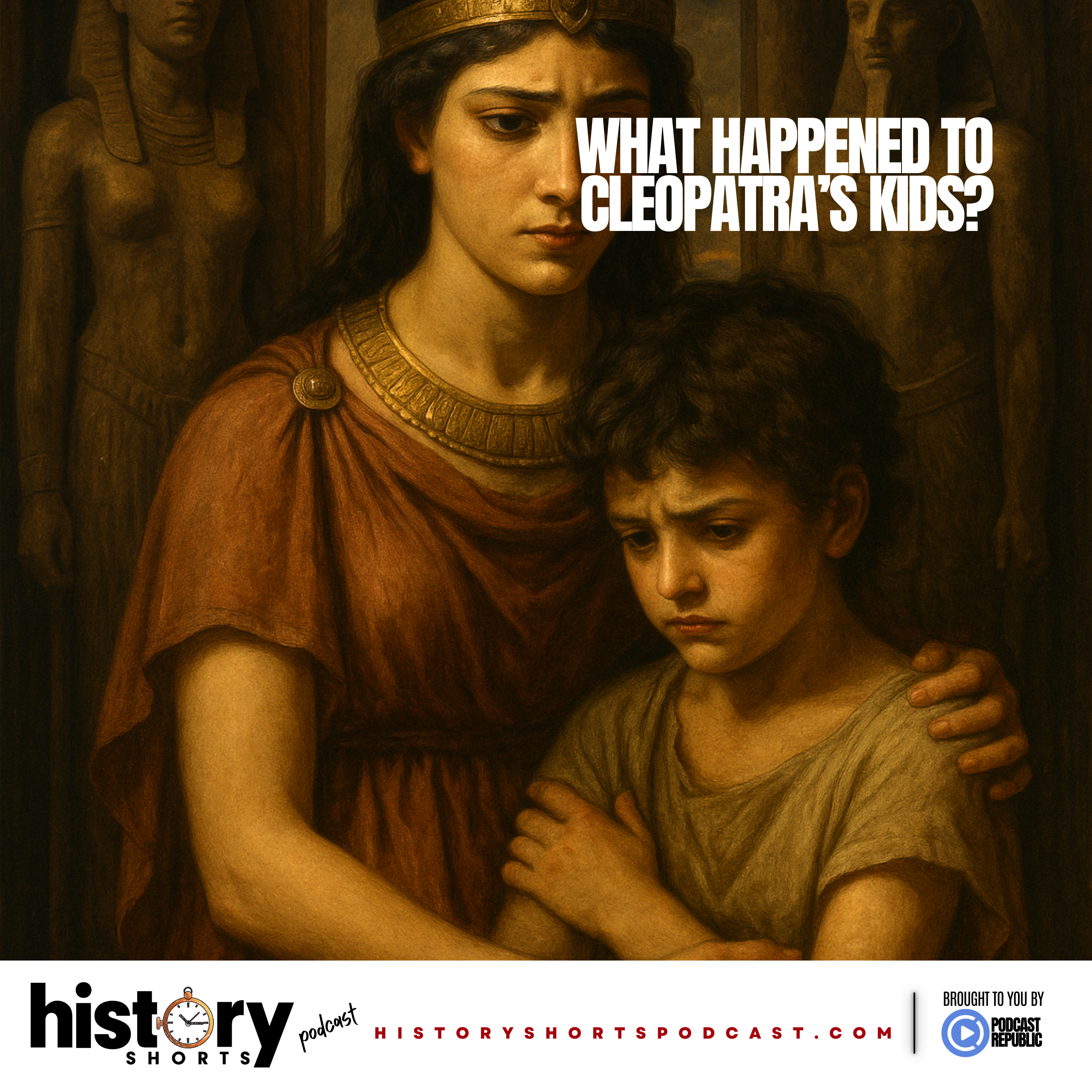 After Cleopatra's fateful death, her children, once heirs to Egypt's greatest dynasty, were thrust into the heart of Rome's empire. This History Shorts episode unravels the hidden fates of Caesarion, Alexander Helios, and Cleopatra Selene, tracing how political ambition and imperial revenge erased their legacy. It's a story of survival, loss, and the final end of Egypt's royal bloodline.