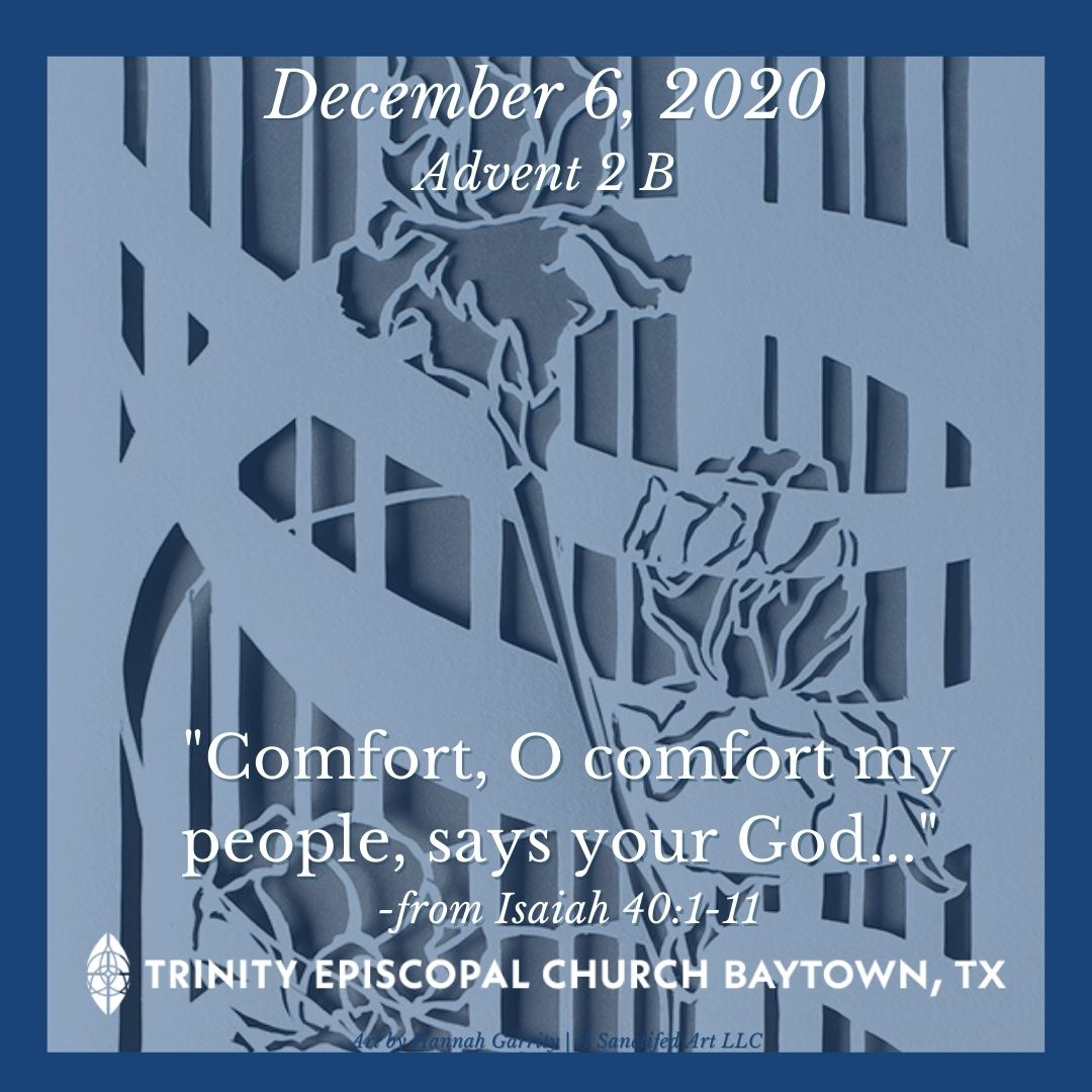 The Gospeller Mark knows this and intentionally begins his Gospel invoking prophet Isaiah. John the baptist is the voice crying out in the wilderness showing us the way of repentance. We have served our term and our penalty is paid, though this time not by us. And though we may still wither and fade, the word of God which is breathed into and over us will stand forever. We have a Good Shepherd who feeds and guides his sheep and gathers us into the bosom of God. We have the good tidings of Jesus Christ, the Son of God.
