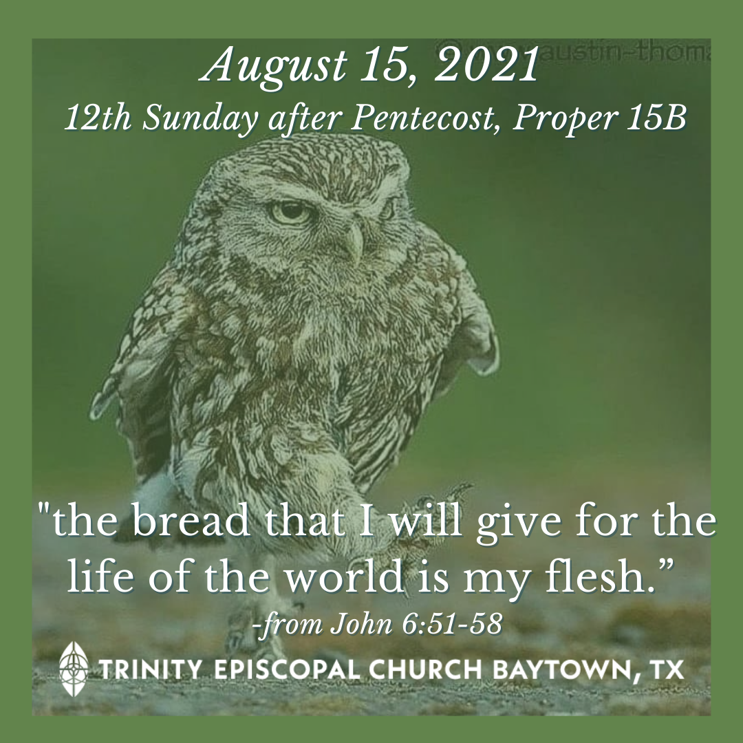Jesus speaks these words as part of the bread of life discourse in John 6 that we have been following in our gospel readings for weeks. At this point, he is speaking about more than the ordinary daily physical bread that gives life for a day, he is speaking about himself as the bread of life and his own flesh as the means that gives eternal life. “And the bread that I will give for the life of the world is my flesh.”