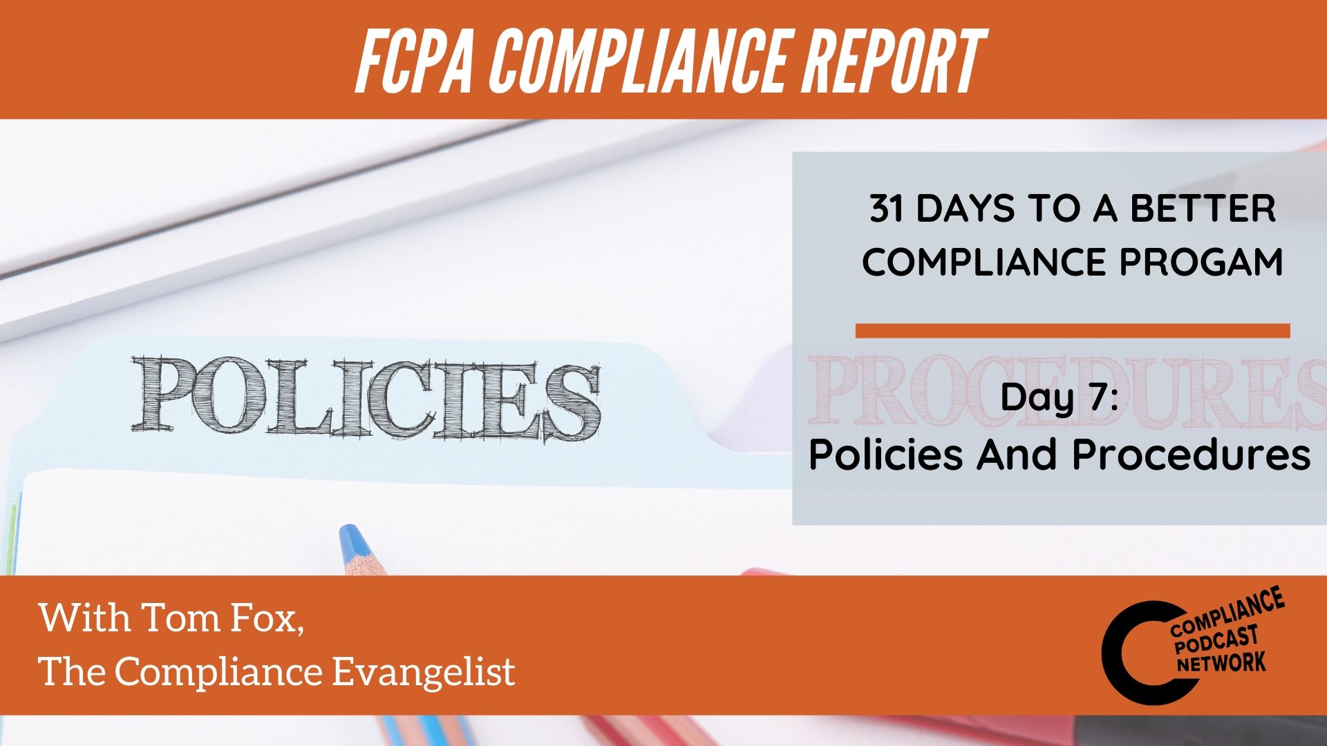 Written compliance policies and procedures, together the Code of Conduct, with form the backbone of your compliance program.