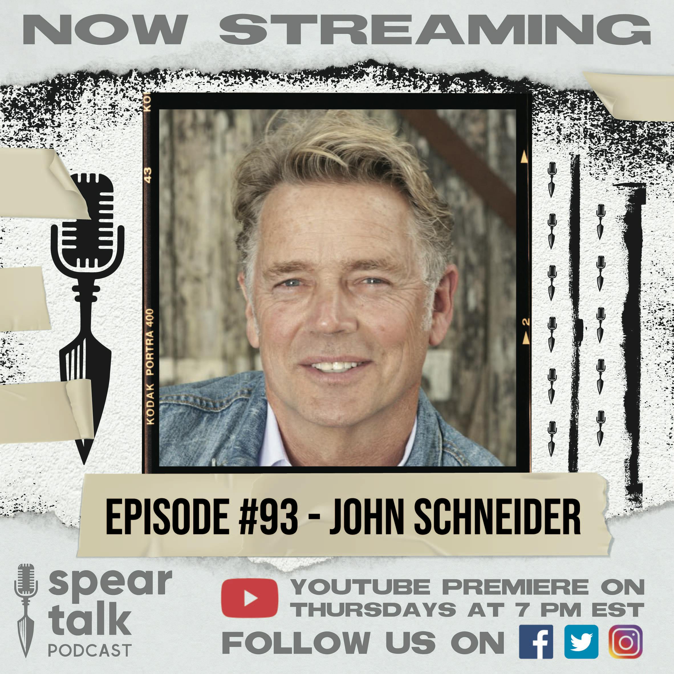 For Spear Talk 93, we welcomed TV and singer royalty, John Schneider, to the show! John is best known for his portrayal of Beauregard "Bo" Duke in the American television action/comedy series The Dukes of Hazzard, as Jonathan Kent in the 2001–11 TV series Smallville, and as James "Jim" Cryer on the television series The Haves and the Have Nots, created by Tyler Perry.