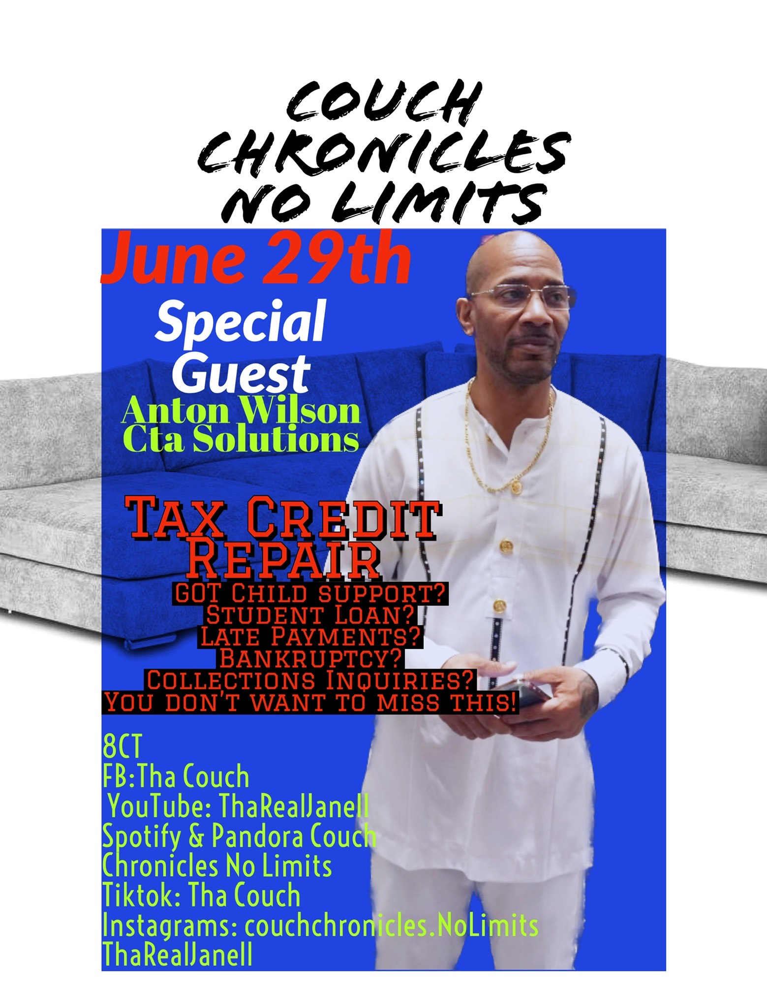 Got a Special Shout Out? Birthday ? Just want to say something special to someone live on Tha Couch Email couchchroniclesnolimit@gmail.com