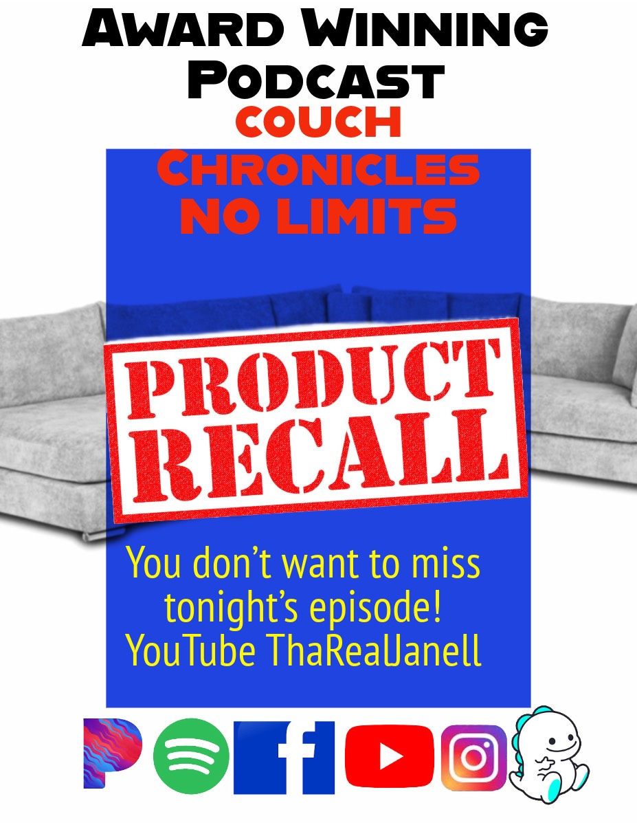 2X Award Winning Podcast Couch Chronicles No Limits SEASON 4Lets finish our convo ...Tonight’s episode you’ll hear about the many food & product recalls & of course other News You Can Use On Tha Couch. If you didn’t get a chance to tune in no worries you can always watch the play back on whatever streaming platform your reading this on or YouTube ThaRealJanell Wanna support? Cash app or Paypal $tharealjanell or $Trjmerch don’t have those? Ask about my Venmo, Apple Pay and Zelle. Got a Special Shout Out? Birthday ? Just want to say something special to someone live on Tha Couch Email info@thacouch.com If you miss the couch you can watch the full episodes on my YouTube channel Fb Tha Couch & you can also listen to Couch Chronicles No Limits on Spotify & Pandora Thank you so much everyone for tuning in. If you would like to be apart of the podcast dm me Come Catch a vibe every Monday, Tuesday, Thursday & Friday 8Ct & Wednesday Mornings at 930Am Be sure to visit my websites www.ThaRealJanell.com Thacouch.com Next Mental Health Talk January 20th Fuck Fentanyl January 31st Next Prison,Jail, Felon Talk February 3rd 4th 6th & 7th If you would like to speak about your experiences your more then welcome to pull up or tune in and join Have a story to share, please join and share. Your story could save a life. ShroomTalk January 24th Looking to capture your favorite moments? Sequel Studios Jenee Lancy is who you need for any Photography, Videography or even a website to be built. Book with her today Looking for custom beats? Mixing mastering ? Get with Tha Couch personal producer Michael Lawrence Mav.Gd on IG If you missed it no worries listen now on Spotify or Pandora Couch Chronicles No Limits. Tha Couch on fb tiktok & Bigo . Music played tonight Stay Woke Too Many Artist: Janell Album: Unreleased