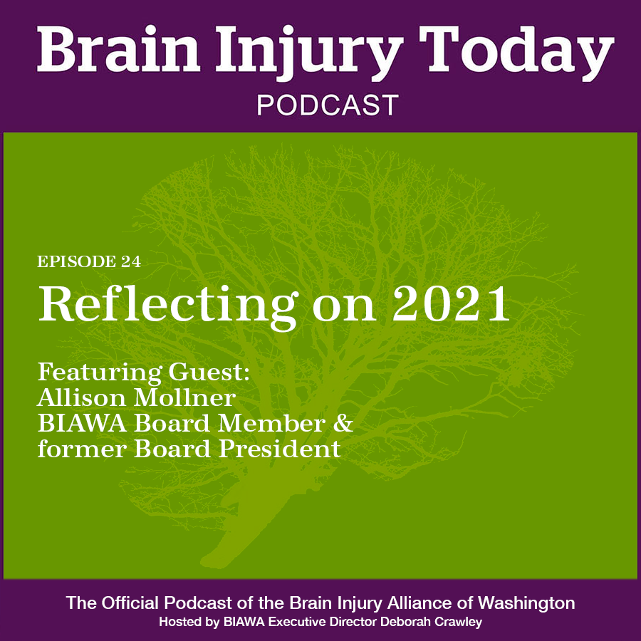 2021 has been another challenging year, but there is plenty of good to reflect on as we head into a new year full of new possibilities. In this episode, Deborah chats with BIAWA Board Member and former Board President Allison Mollner about some of their favorite Brain Injury Today episodes and the power of using personal stories to educate and build community. They also discuss their takeaways from this year that they plan to carry forward into 2022, in hopes that you’ll find a kernel of wisdom to incorporate into your life, whether you’re a survivor, caregiver, professional, family member or friend.