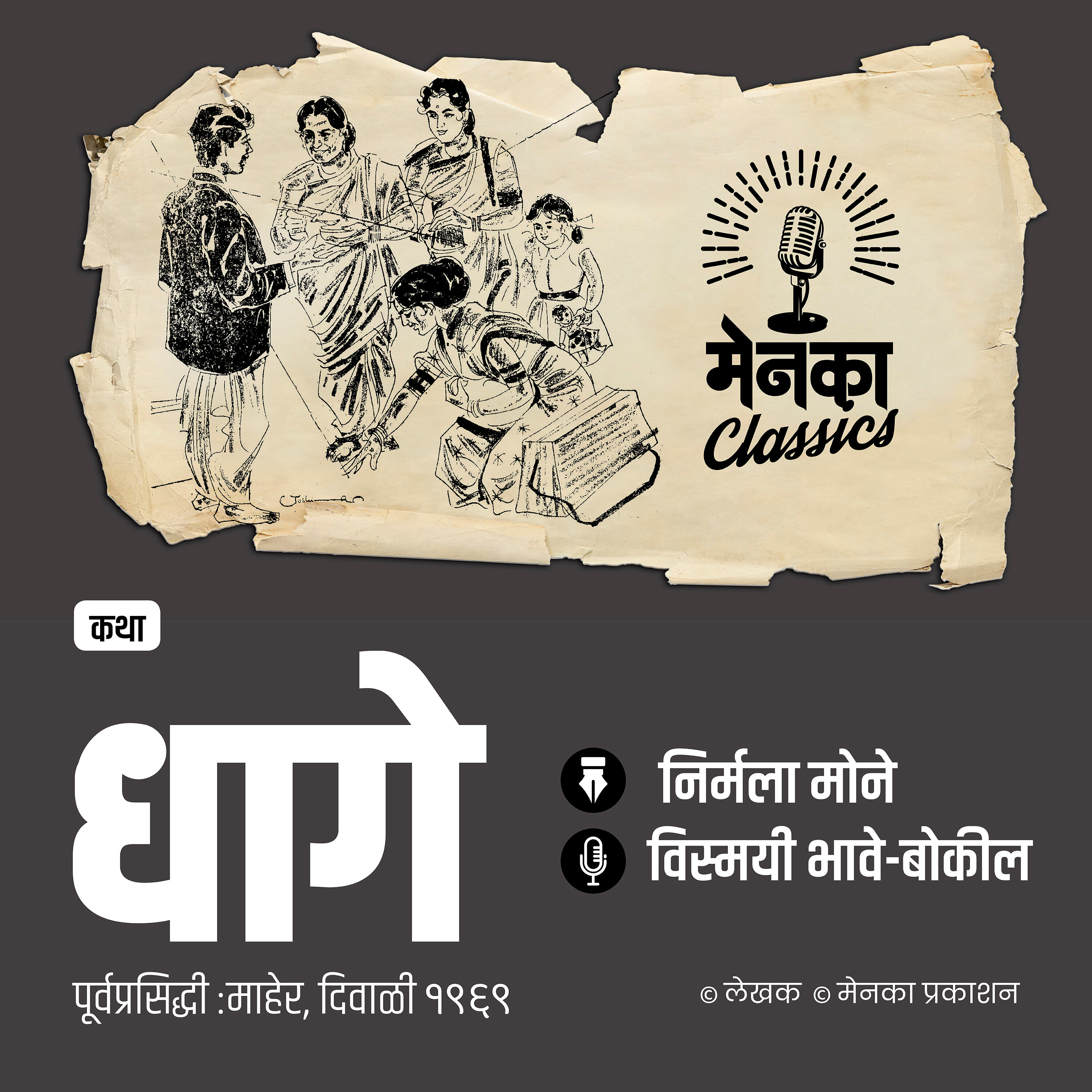 Disclaimer मराठी साहित्याच्या उज्ज्वल परंपरेचा आणि शेकडो ज्ञात-अज्ञात लेखकांच्या सृजनाचा सन्मान तसंच गतस्मृतींना उजाळा ही ‘मेनका क्लासिक्स’ पॉडकास्ट्सची मुख्य उद्दिष्टं आहेत. ‘मेनका प्रकाशना’च्या स्थापनेपासून म्हणजेच १ फेब्रुवारी १९६० पासून ‘माहेर’, ‘मेनका’ आणि ‘जत्रा’मध्ये प्रकाशित झालेल्या उत्तम कथा, लेख, किस्से, विनोद आणि इतर साहित्याची श्राव्य स्वरूपात पुनर्निर्मिती ‘मेनका क्लासिक्स’द्वारे करण्यात येत आहे. हे करत असताना पूर्वप्रकाशित साहित्याच्या मूळ स्वरूपाला कोणताही धक्का पोचू नये याची विशेष खबरदारी घेण्यात येत आहे. एका अर्थी, गेल्या सहा दशकांचा हा अमूल्य असा ठेवा आहे. त्यामुळेच आज या साहित्याचा आस्वाद घेत असताना, सामाजिक धारणांमध्ये, कायद्यात वेळोवेळी झालेल्या बदलांचा-सुधारणांचा, वर्तमानात अभिप्रेत असलेला संदर्भ यात असेलच असे नाही, याची जाणीव श्रोत्यांनी ठेवावी, ही नम्र विनंती. कोणत्याही स्वरूपाच्या जातीय, धार्मिक, भाषिक भेदांचे किंवा अनिष्ट रूढी-परंपरांचे ‘मेनका प्रकाशन’ समर्थन करत नाही.