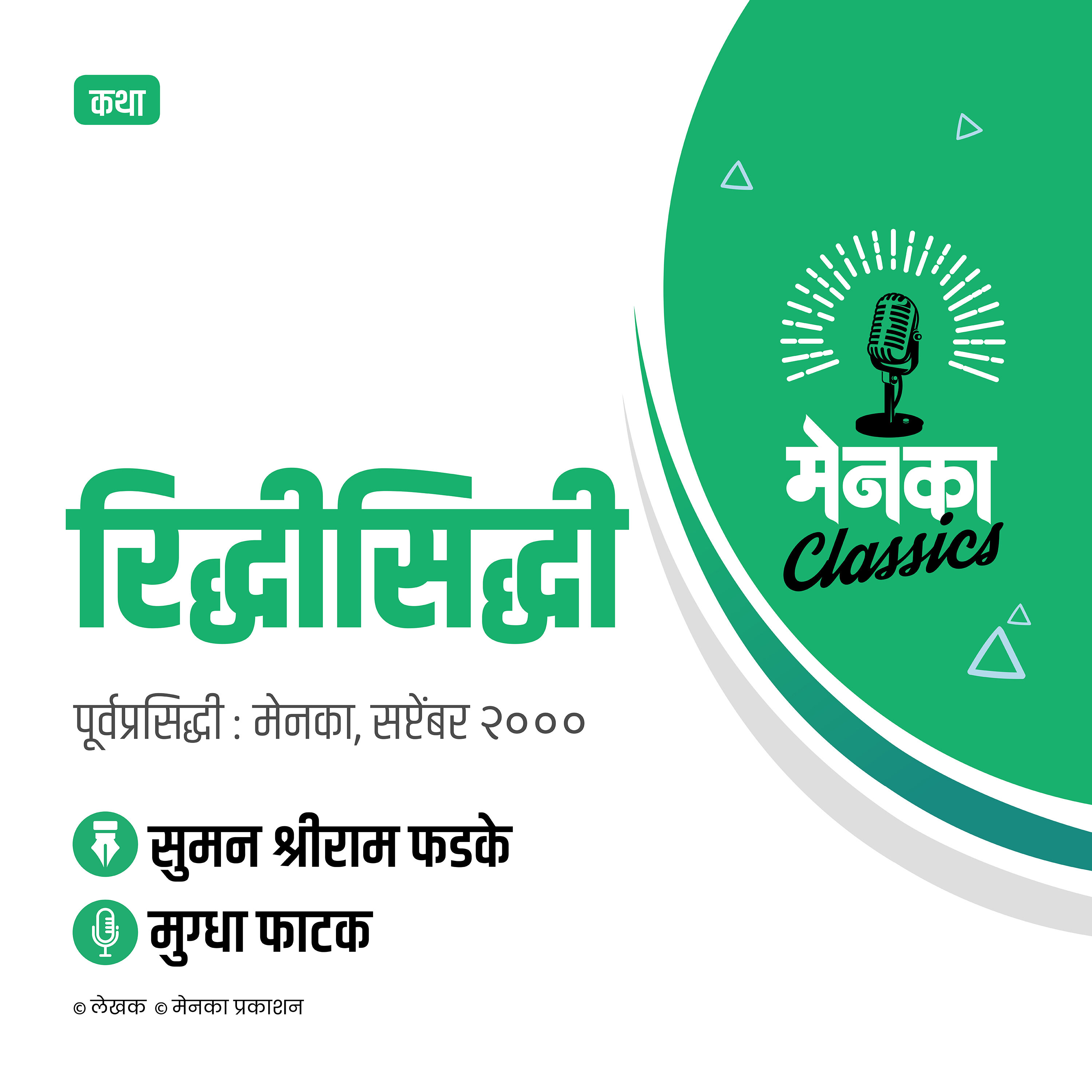 कथा : रिद्धीसिद्धी लेखक : सुमन श्रीराम फडकेवाचन : मुग्धा फाटकपूर्वप्रसिद्धी : मेनका, सप्टेंबर २०००
