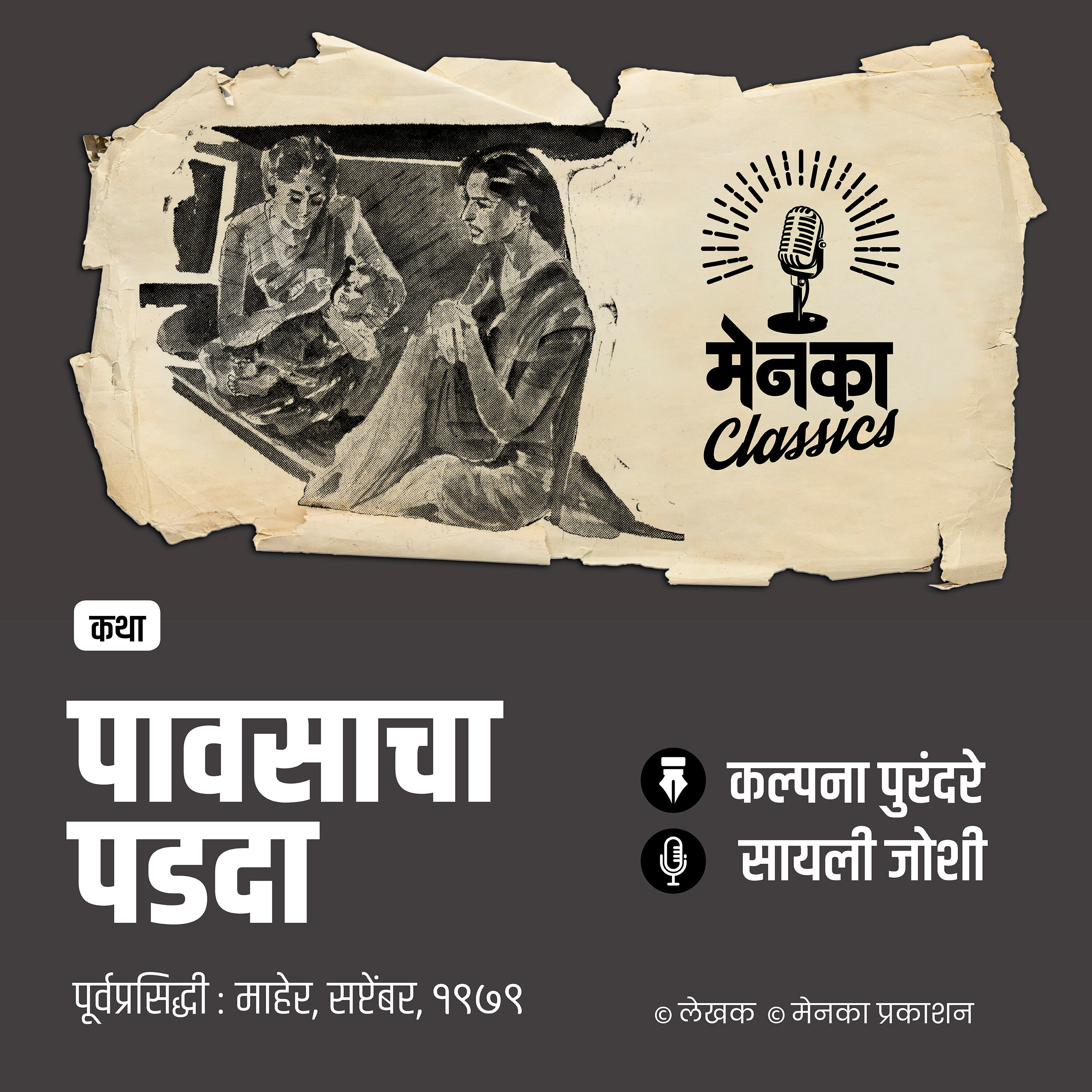 Disclaimer मराठी साहित्याच्या उज्ज्वल परंपरेचा आणि शेकडो ज्ञात-अज्ञात लेखकांच्या सृजनाचा सन्मान तसंच गतस्मृतींना उजाळा ही ‘मेनका क्लासिक्स’ पॉडकास्ट्सची मुख्य उद्दिष्टं आहेत. ‘मेनका प्रकाशना’च्या स्थापनेपासून म्हणजेच १ फेब्रुवारी १९६० पासून ‘माहेर’, ‘मेनका’ आणि ‘जत्रा’मध्ये प्रकाशित झालेल्या उत्तम कथा, लेख, किस्से, विनोद आणि इतर साहित्याची श्राव्य स्वरूपात पुनर्निर्मिती ‘मेनका क्लासिक्स’द्वारे करण्यात येत आहे. हे करत असताना पूर्वप्रकाशित साहित्याच्या मूळ स्वरूपाला कोणताही धक्का पोचू नये याची विशेष खबरदारी घेण्यात येत आहे. एका अर्थी, गेल्या सहा दशकांचा हा अमूल्य असा ठेवा आहे. त्यामुळेच आज या साहित्याचा आस्वाद घेत असताना, सामाजिक धारणांमध्ये, कायद्यात वेळोवेळी झालेल्या बदलांचा-सुधारणांचा, वर्तमानात अभिप्रेत असलेला संदर्भ यात असेलच असे नाही, याची जाणीव श्रोत्यांनी ठेवावी, ही नम्र विनंती. कोणत्याही स्वरूपाच्या जातीय, धार्मिक, भाषिक भेदांचे किंवा अनिष्ट रूढी-परंपरांचे ‘मेनका प्रकाशन’ समर्थन करत नाही.