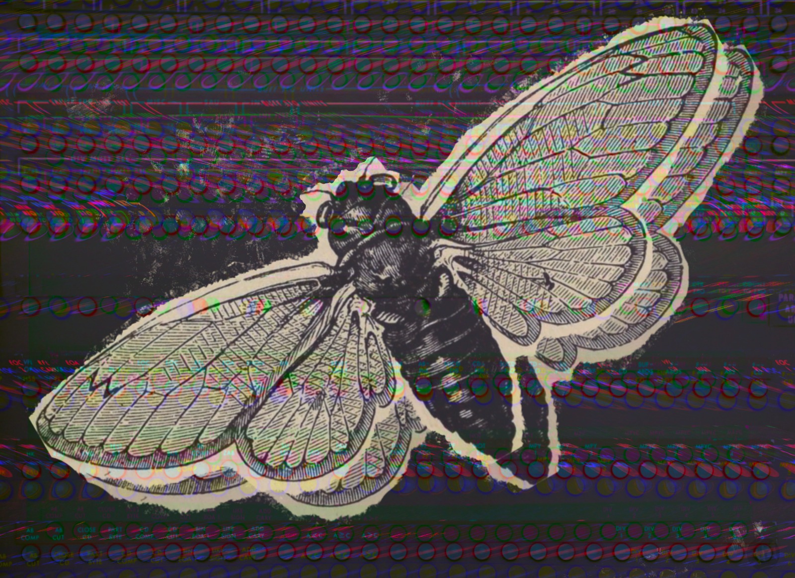 The image for this episode shows a drawing of a moth on a purple and black patterned background. It was created by Saronik Bosu by manipulating public domain photograph of the circuitry of IBM 7030 and a drawing from a nineteenth century entomology textbook, also in public domain.
