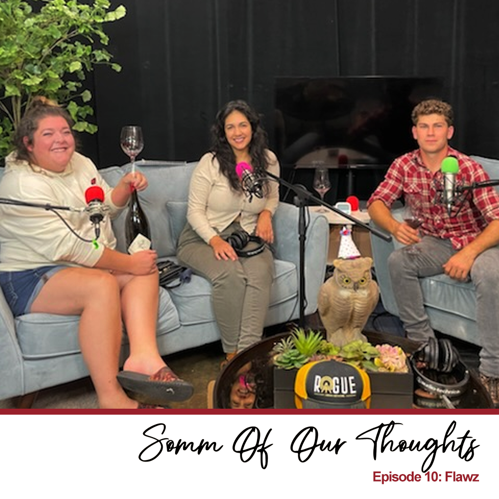 Carter and Sarah sitting with Joey Bagnasco, a winemaker friend, discussing wine flaws and faults