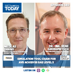We’d love to hear from you. Share your comments, questions and ideas for future topics and guests to podcast@sae.org. Don’t forget to take a moment to follow SAE Tomorrow Today—a podcast where we discuss emerging technology and trends in mobility with the leaders, innovators and strategists making it all happen—and give us a review on your preferred podcasting platform.