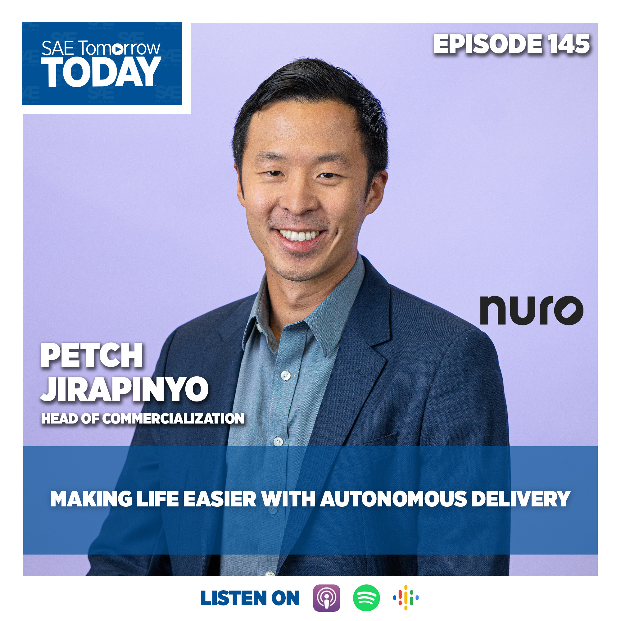We’d love to hear from you. Share your comments, questions and ideas for future topics and guests to podcast@sae.org. Don’t forget to take a moment to follow SAE Tomorrow Today—a podcast where we discuss emerging technology and trends in mobility with the leaders, innovators and strategists making it all happen—and give us a review on your preferred podcasting platform.