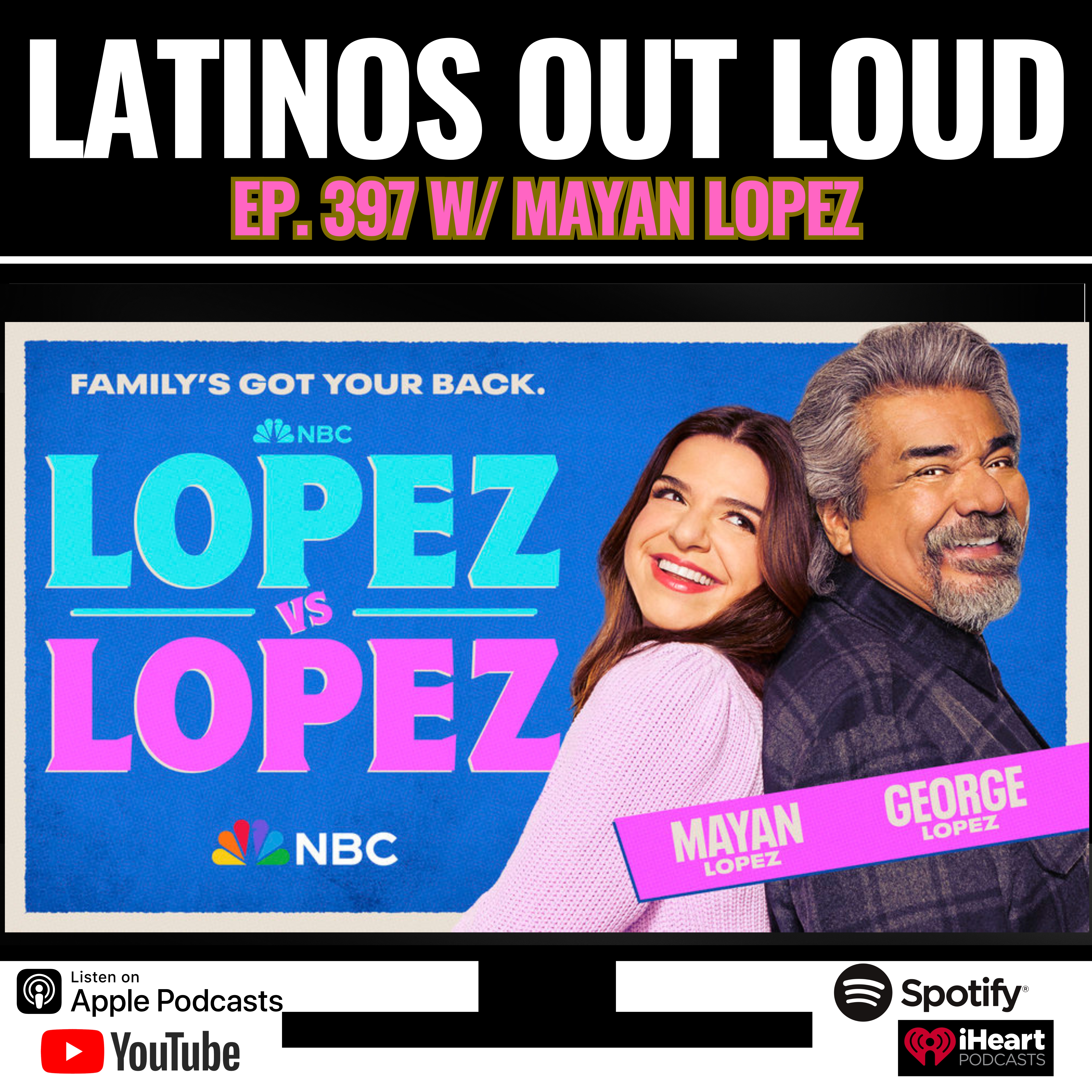 The cast includes George Lopez, Mayan Lopez, Selenis Leyva (former guest of LOL! [ep. 393, link below] ), Matt Shively, Brice Gonzalez and Al Madrigal (former guest of LOL [ep. #270, link below].