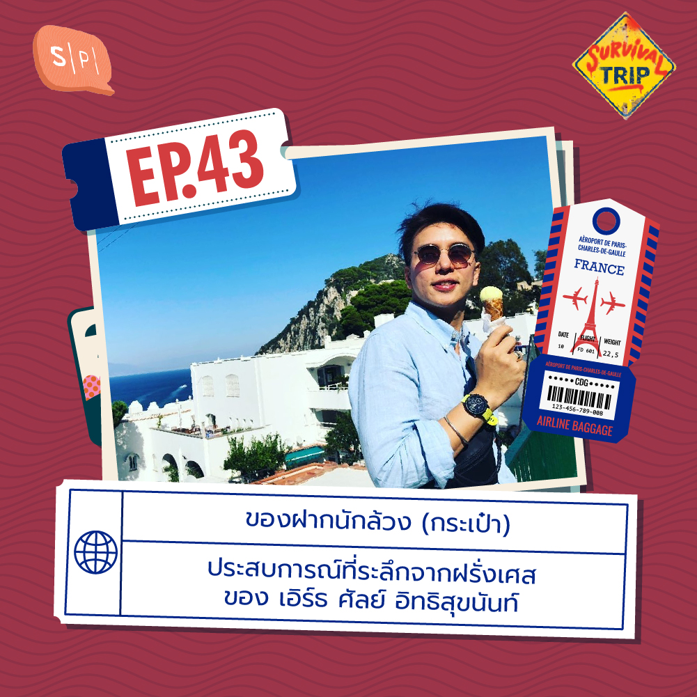 เมื่อพิธีกรรุ่นพี่ ‘เอิร์ธ-ศัลย์ อิทธิสุขนันท์’ มาชนกับพิธีกรรุ่นน้อง ‘ทอม-จักรกฤต โยมพยอม’ Survival Trip อีพีนี้จึงมันคูณสอง กับการเล่าเรื่องราวที่ระลึกที่สุดแสนจะระทึกจากเมืองแห่งน้ำหอมอย่าง ‘ฝรั่งเศส’