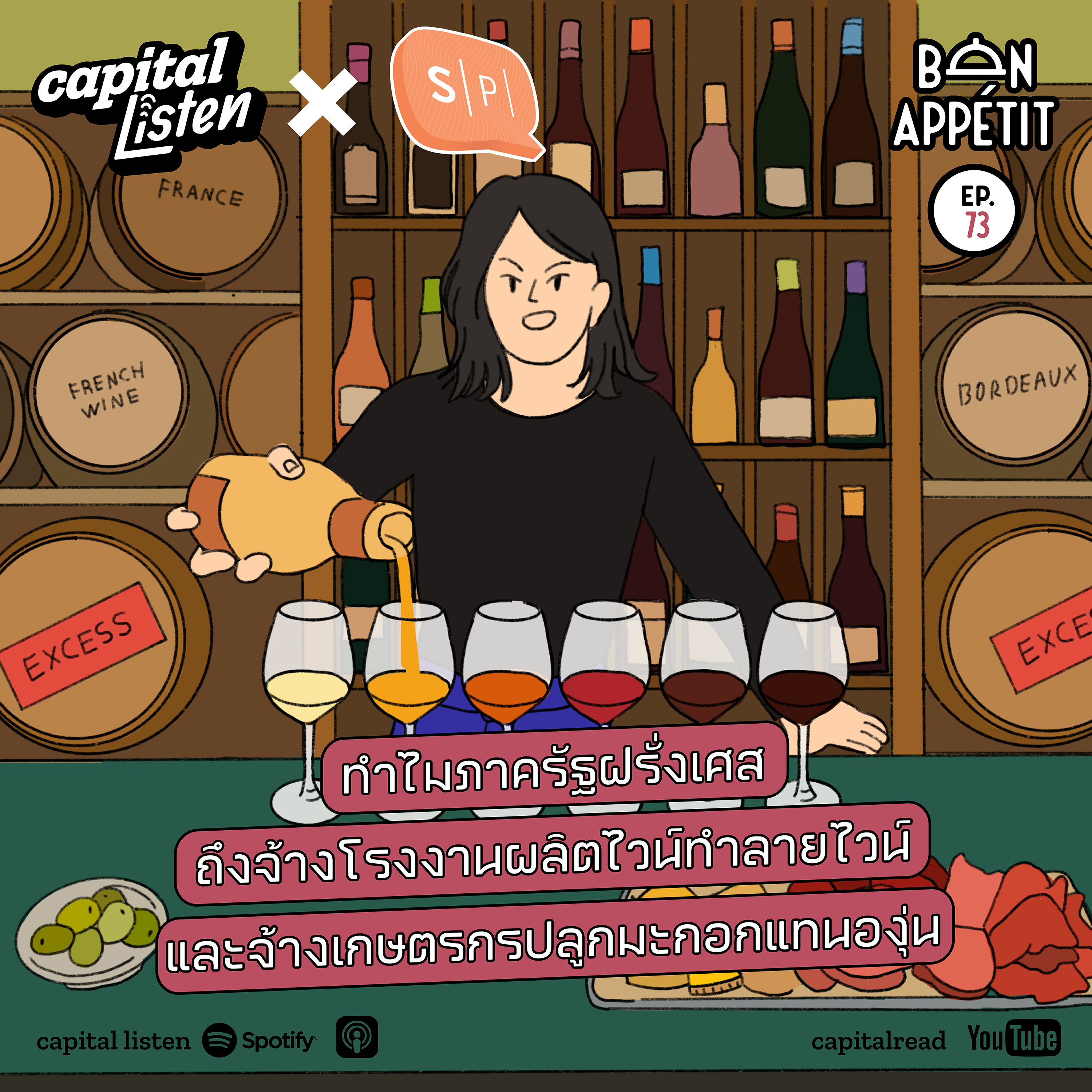 นอกจากต้องแก้ปัญหาไวน์ล้นตลาดด้วยการทำลายไวน์แล้ว ความต้องการไวน์ที่ลดลงยังส่งผลต่อเกษตรกรผู้ปลูกองุ่น รัฐบาลฝรั่งเศสทำวิธีไหนเพื่อแก้ปัญหาเกษตรกร และเรื่องนี้เกี่ยวกับปัญหาเงินเฟ้อและเศรษฐกิจโลกยังไง ตามมณีเนตร วรชนะนันท์ ไปหาคำตอบพร้อมกันในพ็อดแคสต์ Bon Appétit EP.73 ตอนนี้