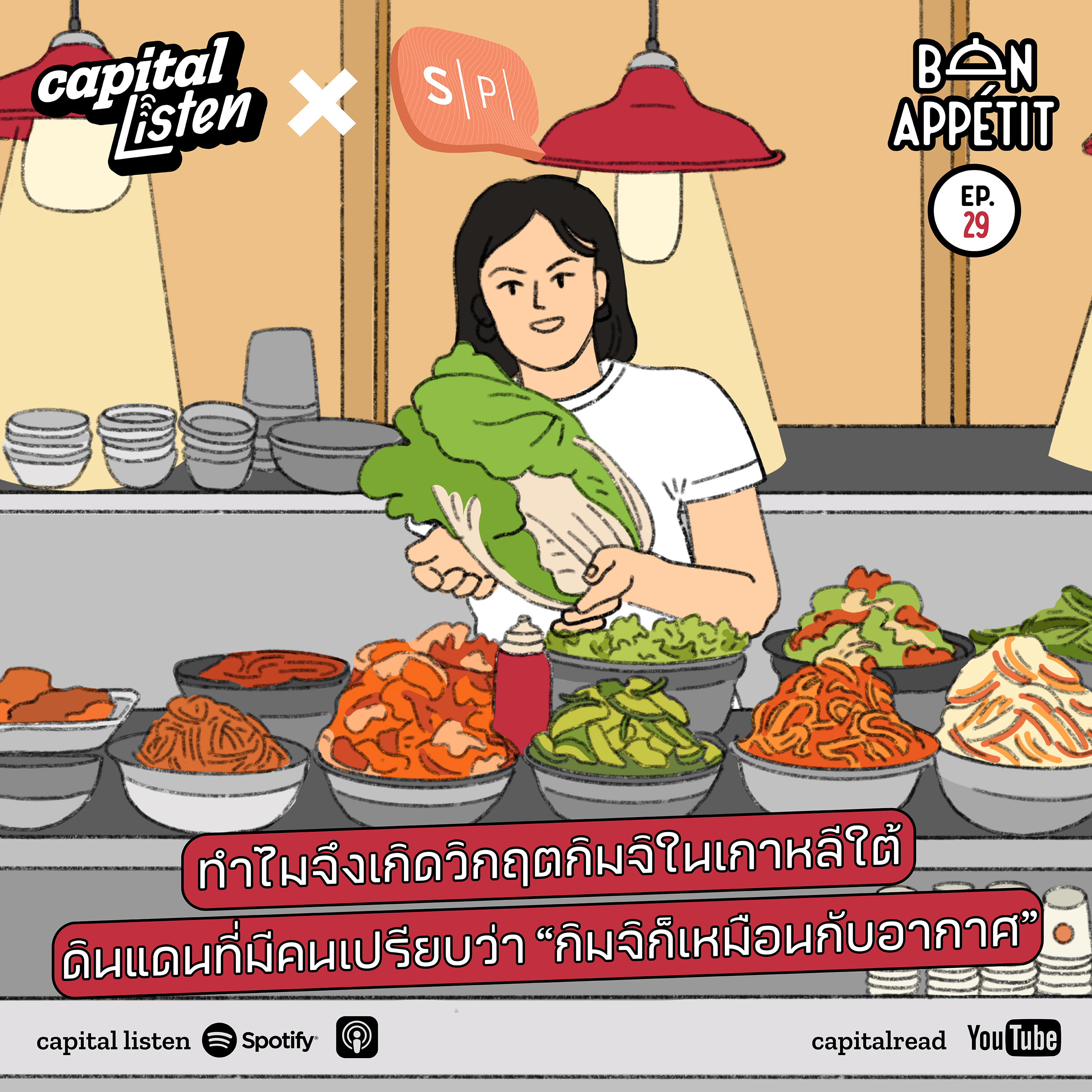 จากปัญหาโลกร้อน สภาพภูมิอากาศเปลี่ยนแปลง ผักกาดปลูกไม่ขึ้น เกษตรกรหันไปปลูกแอปเปิล จนถึงการเจอคู่แข่งทางการค้า (กิมจิ) ที่สามารถผลิตกิมจิในราคาที่ถูกกว่าอย่างจีน ส่งผลให้เกาหลีใต้ตกอยู่ในห้วงเวลาที่เรียกว่า Kimchi Crisis หรือวิกฤตกิมจิ ที่ในคราวนี้รัฐบาลเกาหลีต้องเร่งแก้ไขปัญหาที่เกิดขึ้น และในวิกฤตที่เป็นปัญหาระดับชาติ รัฐบาลเกาหลีแก้ปัญหายังไง ฟังคำตอบได้ใน Bon Appetit EP.29