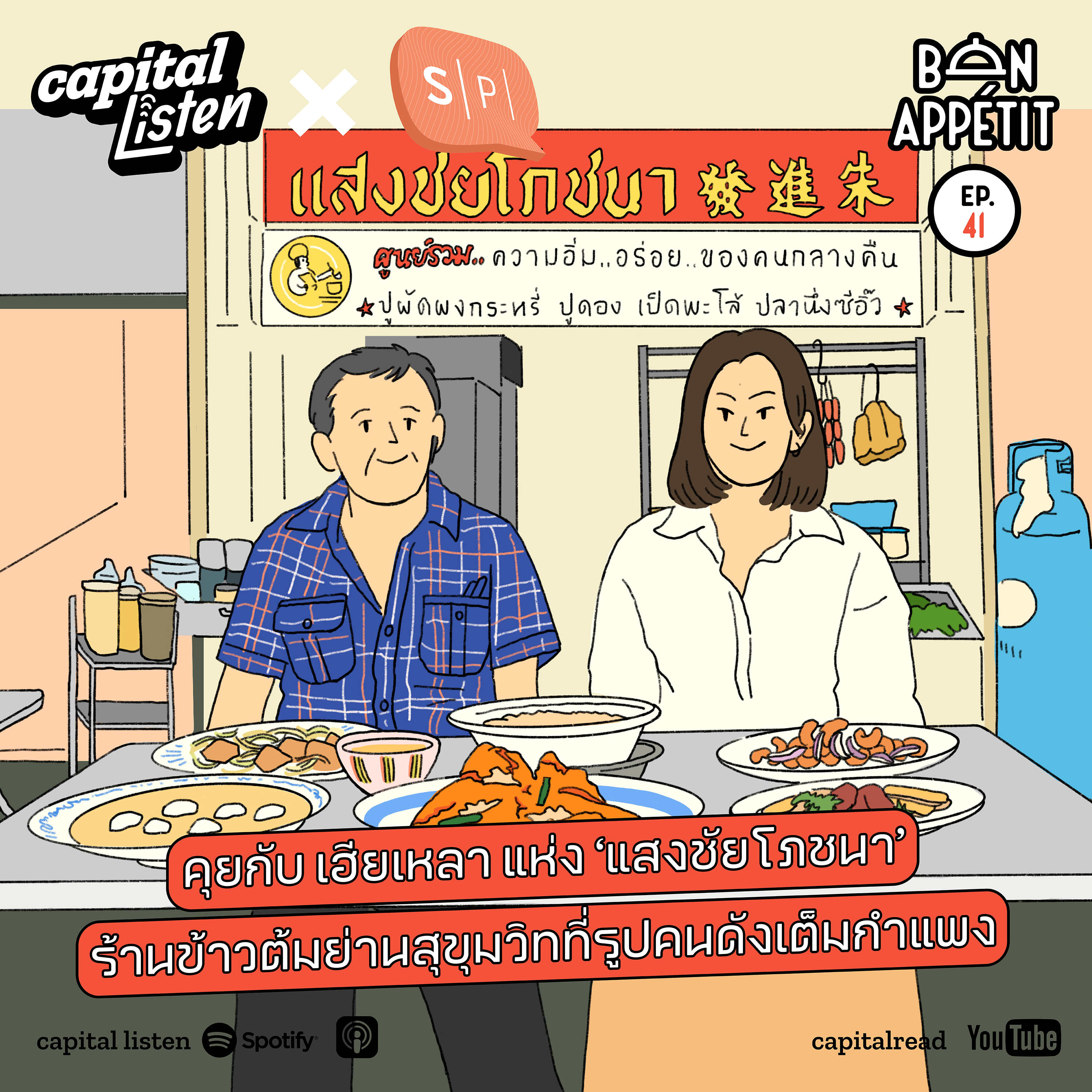 ภาพถ่ายคู่คนดังมากมายหลายคนที่ติดอยู่บนกำแพงคล้ายจิตรกรรมฝาผนัง คือภาพถ่ายที่ไม่ได้ถ่ายในคราเดียว แต่เป็นภาพที่ค่อยๆ ถ่ายและเยอะขึ้นไปตามวันเวลาที่เดินไปข้างหน้า นอกจากจะบ่งบอกว่าเป็นร้านที่มีคนดังแวะเวียนมาเสมอ ภาพถ่ายเหล่านั้นยังบอกถึงการเดินทางที่ยาวนานของแสงชัยโภชนาอีกเช่นกัน จากภาพถ่ายใบแรกมาจนถึงใบปัจจุบันแสงชัยโภชนาเป็นมายังไง ตาม Bon Appétit ธุรกิจรอบครัว EP.41 ไปฟังกันเลย