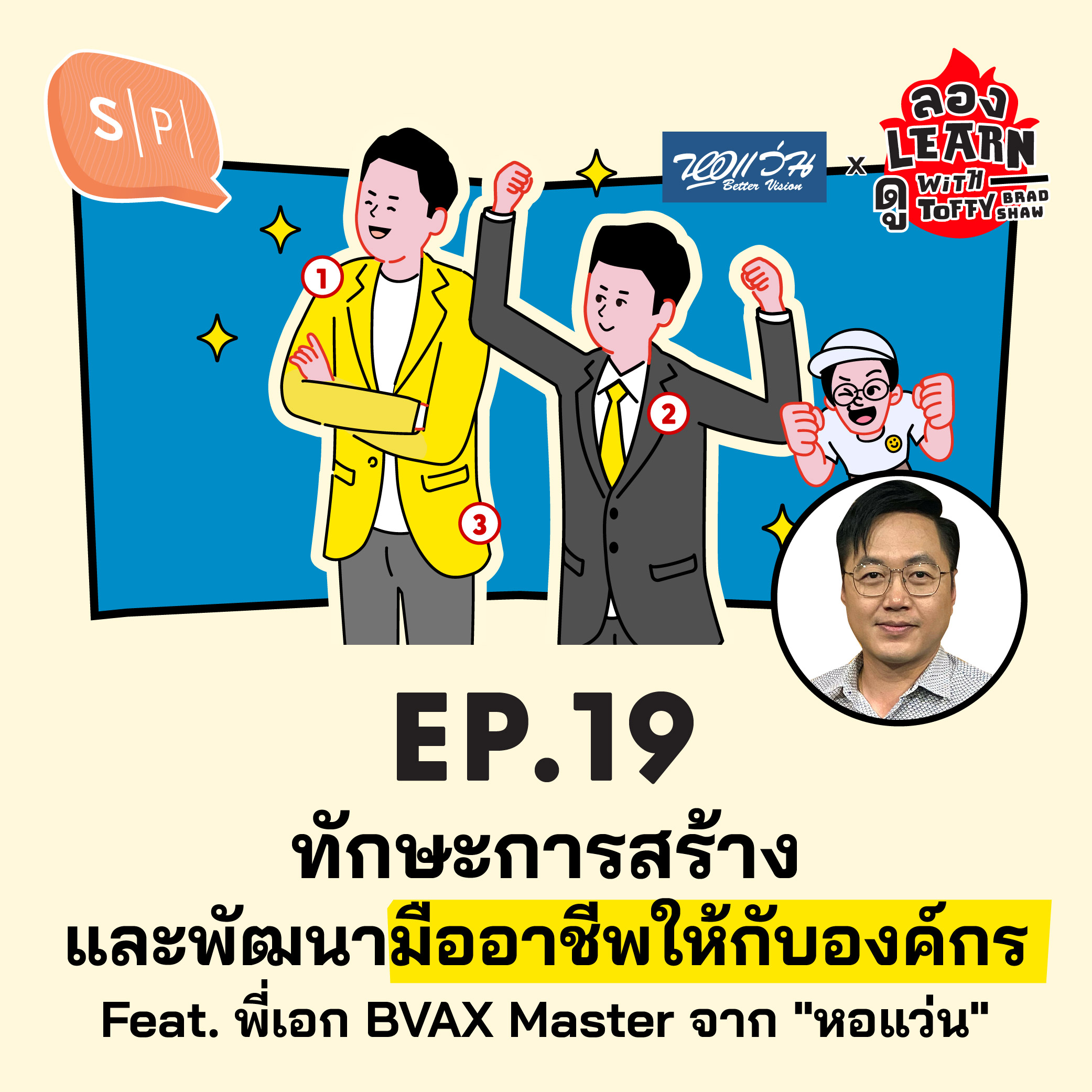 ท้อฟฟี่ แบรดชอว์ เล็งเห็นถึงทักษะการพัฒนาคนตรงนี้ เลยขอคุยกับ พี่เอก BVAX Master จาก "หอแว่น" อีกครั้ง ในฐานะที่เป็นทั้งพนักงานและให้ความรู้กับคนในองค์กรมามากมายว่า เขามีเทคนิคหรือวิธีการสร้างและพัฒนาคนให้เก่งขึ้นอย่างไรบ้าง