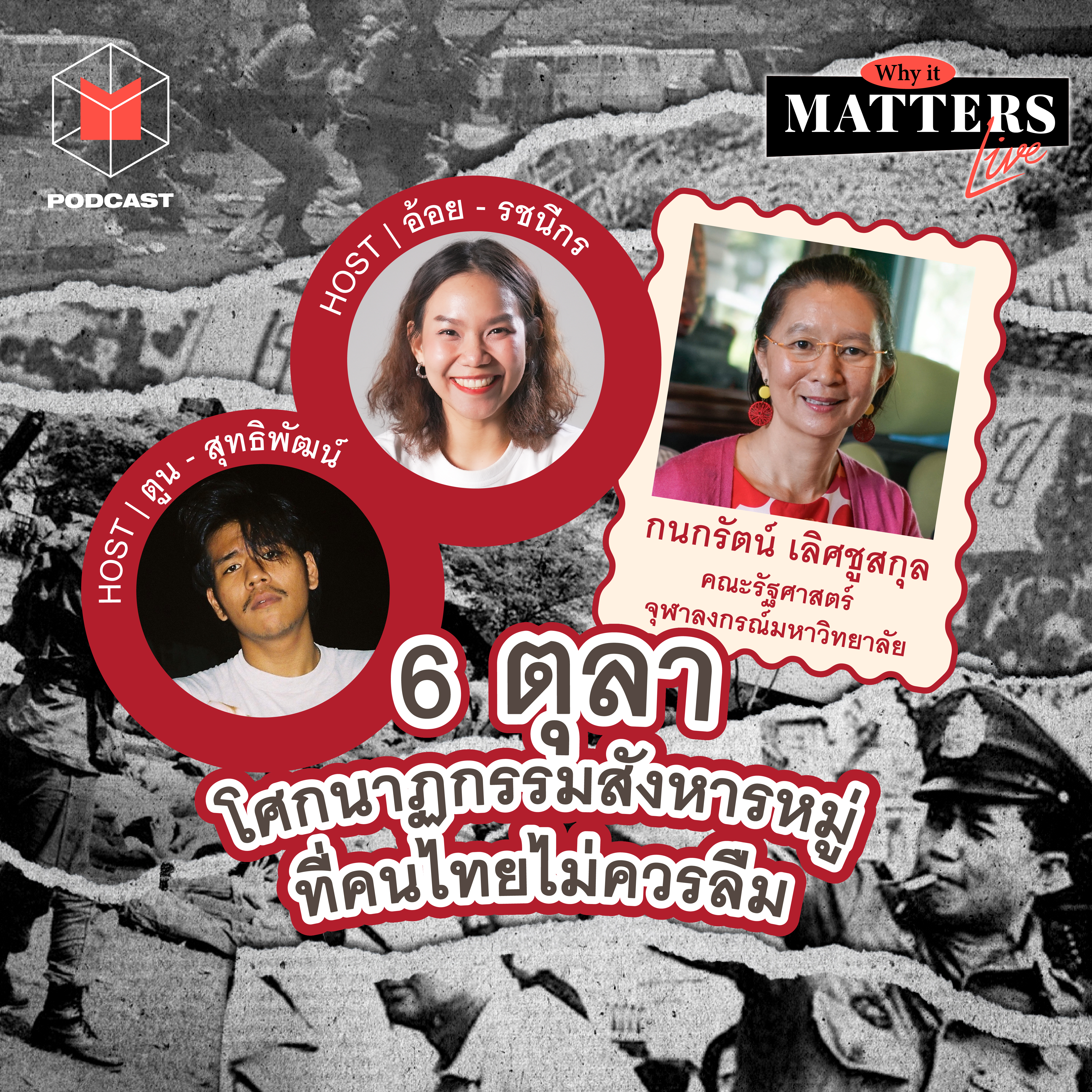 รายการ #WhyItMATTERsNOW ชวน ผศ.ดร.กนกรัตน์ เลิศชูสกุล คณะรัฐศาสตร์ จุฬาลงกรณ์มหาวิทยาลัย พูดคุยถึงโศกนาฏกรรมในอดีตและเราจะนำเหตุการณ์ในความทรงจำนี้มาเป็นบทเรียนให้กับอนาคตการเมืองไทยได้อย่างไรบ้าง?