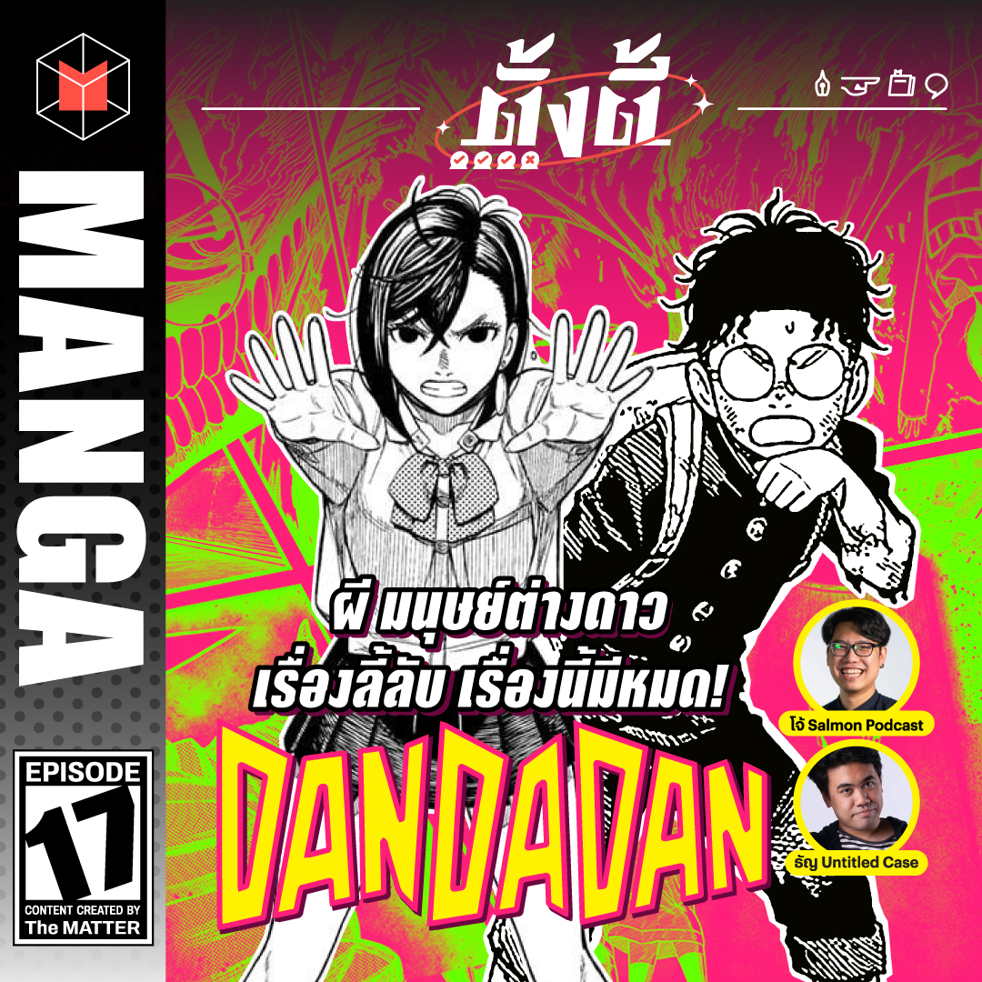 ถ้าคนที่คุณแอบชอบไม่เชื่อเรื่องผี แต่คุณกลับเชื่อแบบปักใจ คุณจะทำยังไง? Dandadan คือส่วนผสมที่ลงตัวระหว่างเส้นเรื่องความรักกับการท้าพิสูจน์เรื่องลี้ลับในสิ่งที่มนุษย์ไม่เคยเชื่อว่ามีอยู่จริง ไม่ว่าจะเป็น ผี วิญญาณ มนุษย์ต่างดาว รายการ #ตั้งตี้ ชวนมาฟังเรื่องราวสุดแฟนตาซีของมังงะเรื่องนี้ ถ้าพร้อมจะไปฟังการต่อสู้เหนือธรรมชาติและเหนือจินตนาการ ไปกดฟังได้เลย! หรือใครอ่านแล้ว มาคอมเมนต์พูดคุยกับเราได้เลยนะ