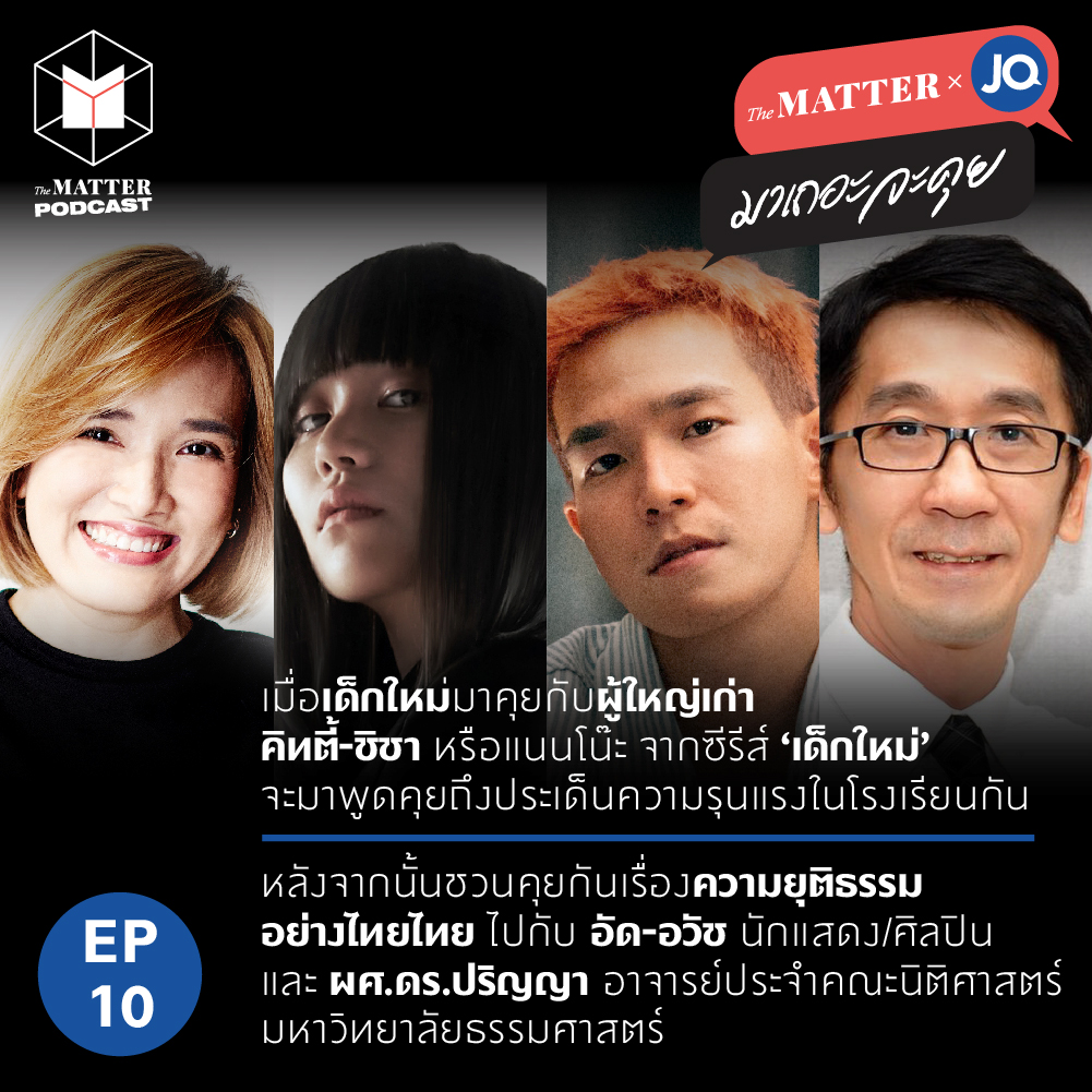 เมื่อเด็กใหม่มาคุยกับผู้ใหญ่เก่า คิทตี้-ชิชา อมาตยกุล หรือแนนโน๊ะ จากซีรีส์ ‘เด็กใหม่’ จะมาพูดคุยถึงประเด็นความรุนแรงในโรงเรียนกันแล้วชวนคุยกันต่อเรื่องความยุติธรรมอย่างไทยไทย ไปกับ อัด - อวัช รัตนปิณฑะ นักแสดง/ศิลปิน และ ผศ.ดร.ปริญญา เทวานฤมิตรกุล อาจารย์ประจำคณะนิติศาสตร์ มหาวิทยาลัยธรรมศาสตร์