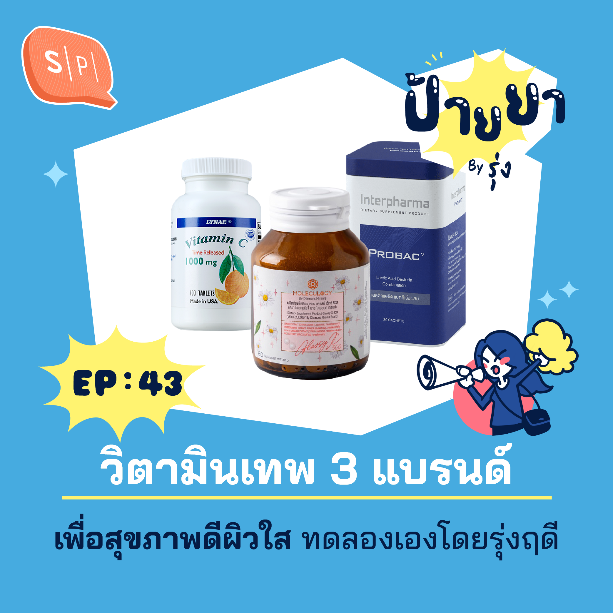 เรื่องสุขภาพ นอกจากออกกำลังกาย ควบคุมการกิน อาจต้องพึ่งพาวิตามินเสริม ในส่วนที่พร่องไปด้วย เอพิโสดนี้รุ่งฤดีจึงหยิบเอาวิตามิน 3 ชนิด 3 แบรนด์ ที่ใช้งานมาแล้วด้วยตัวเอง มารีวิวให้ฟังกัน