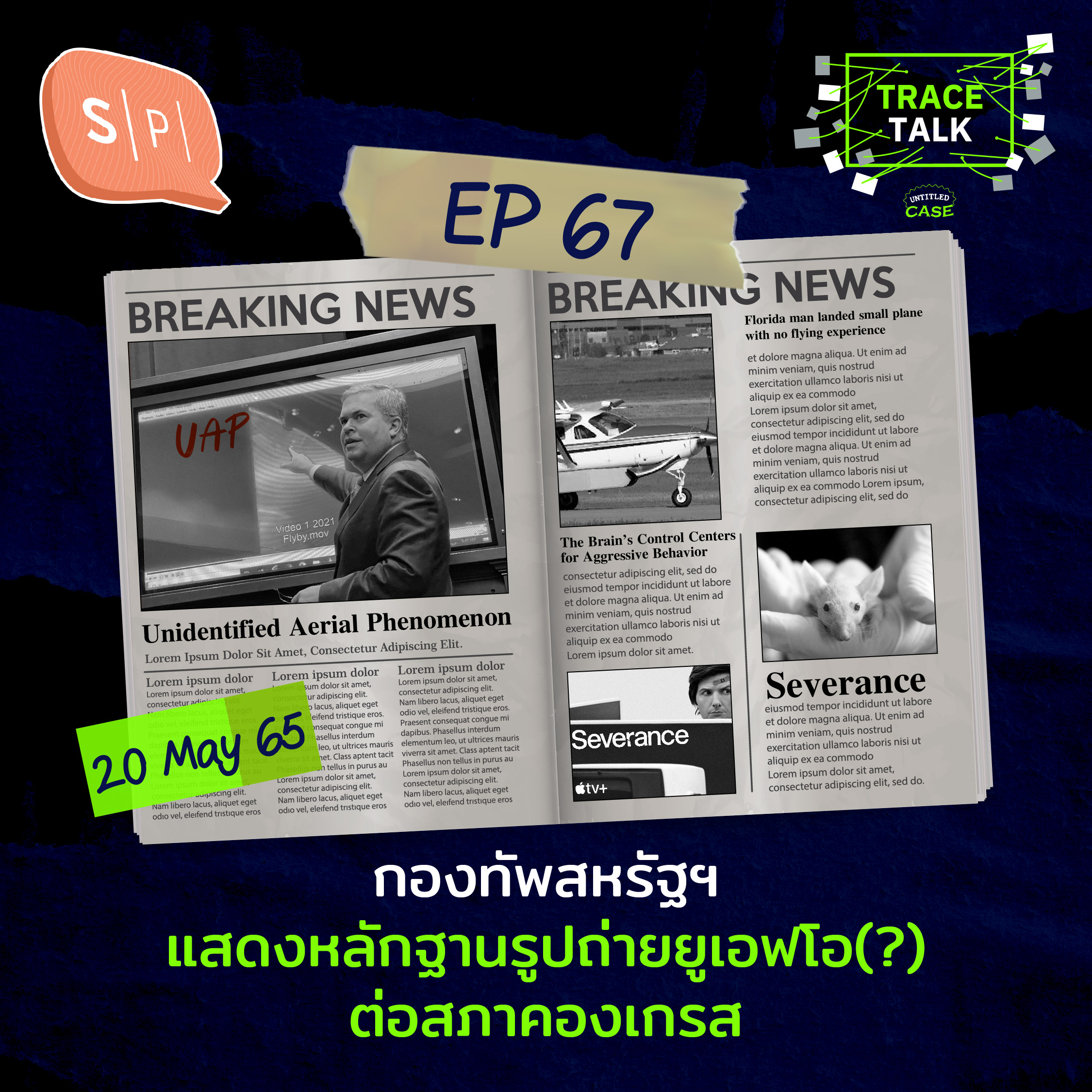 สัปดาห์นี้พบกับ ข่าวที่ธัญจองมาตั้งแต่ในกรุ๊ป Untitled Club by Untitled Case เมื่อกองทัพสหรัฐฯ แสดงภาพถ่ายอายุกว่า 50 ที่แสดง UAP (Unidentified Aerial Phenomenon) ปรากฏการณ์บนฟากฟ้าที่ระบุที่มาไม่ได้จำนวนมาก / Doppelganger ของอีลอน มัสก์ / อะไรคือหลักการของตัวตนอีกคนหนึ่งในมัลติเวิร์สของมาร์เวล / ณ ฟลอริดา ชายคนหนึ่งนำเครื่องบินลงจอดโดยไม่มีประสบการณ์การบินเลยแม้สักหนึ่ง / งานวิจัยของมหาวิทยาลัยแห่งรัฐจอร์เจีย ทำการทดลองว่าสมองส่วนหนึ่งอาจควบคุมความก้าวร้าวของสิ่งมีชีวิตอยู่ / Severance ซีรีส์จาก Apple TV+ ที่เราแยกชีวิตงานออกจากชีวิตส่วนตัวได้อย่างเด็ดขาด