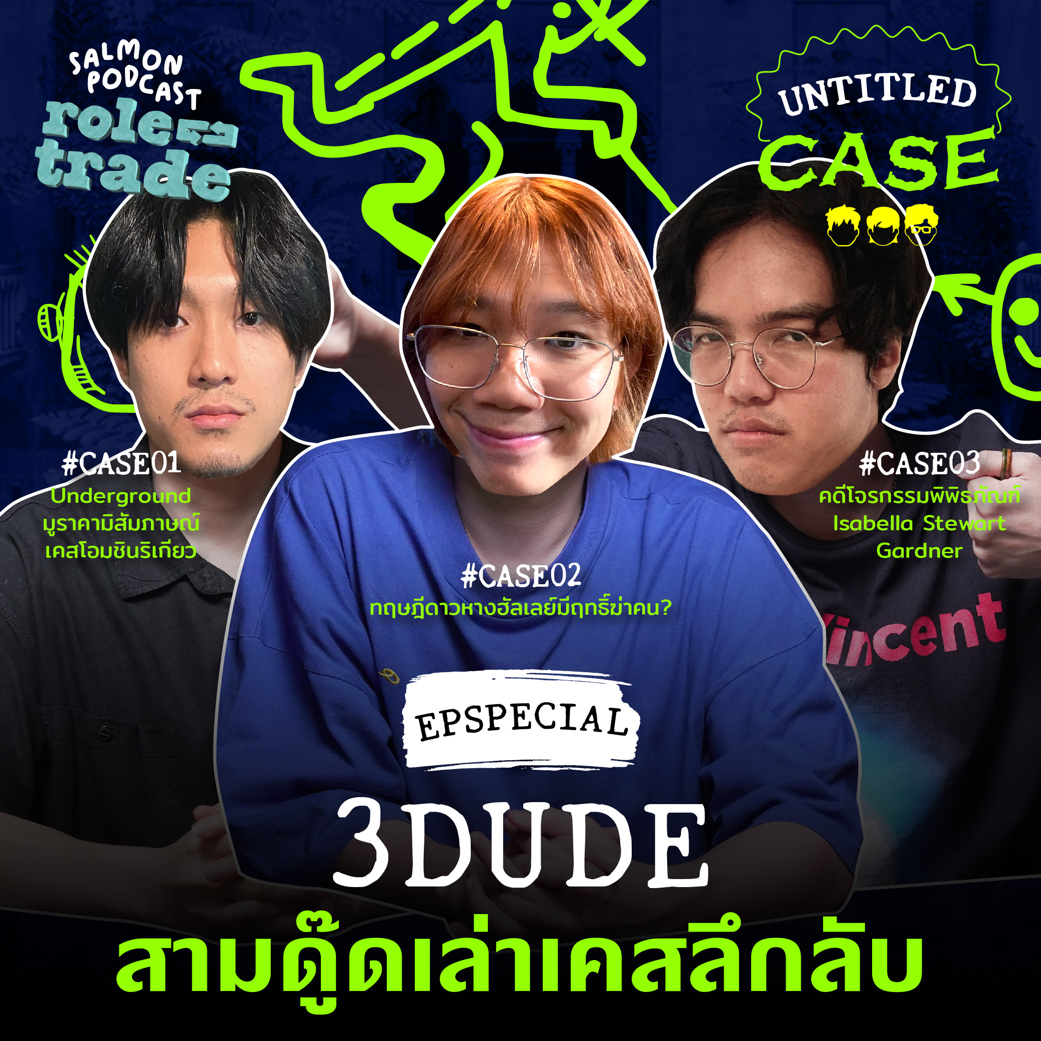 แคมเปญ Role-Trade พาเอาสามดู๊ดมาจัด Untitled Case โดยไม่มีธีมครอบ ต้นกล้า เม้ง จุฬ อยากเอาเรื่องอะไรในสไตล์ UC มาเล่าก็เต็มที่เลย เราเลยได้เจอ 3 เคส 3 รสชาติ ในอีพีนี้