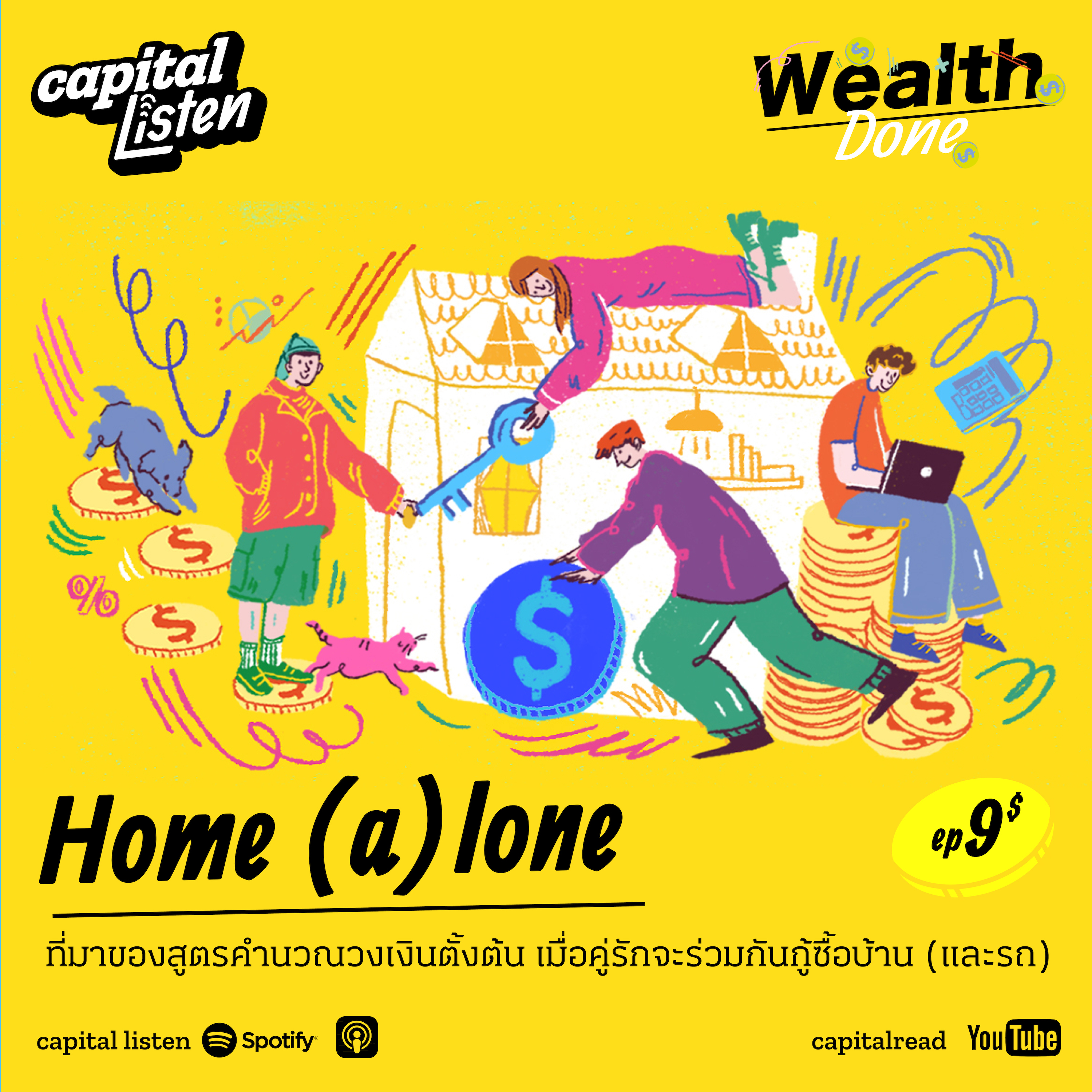 Wealth Done Podcast ตอนนี้ สุวภา เจริญยิ่ง จะมาเล่าที่มาของสูตรคำนวณวงเงินตั้งต้นเมื่อคู่รักจะร่วมกันกู้ซื้อบ้าน (และรถ) ที่เหมาะสม ว่าให้นำเงินเดือนของทั้งสองคนบวกกันแล้วคูณ 100 เช่น ถ้าคนหนึ่งเงินเดือน 50,000 อีกคนเงินเดือน 60,000 รวมกันทั้งหมด 110,000 บาท คูณ 100 จะเท่ากับ 11,000,000 ซึ่งเป็นราคาบ้านที่ซื้อได้จริง