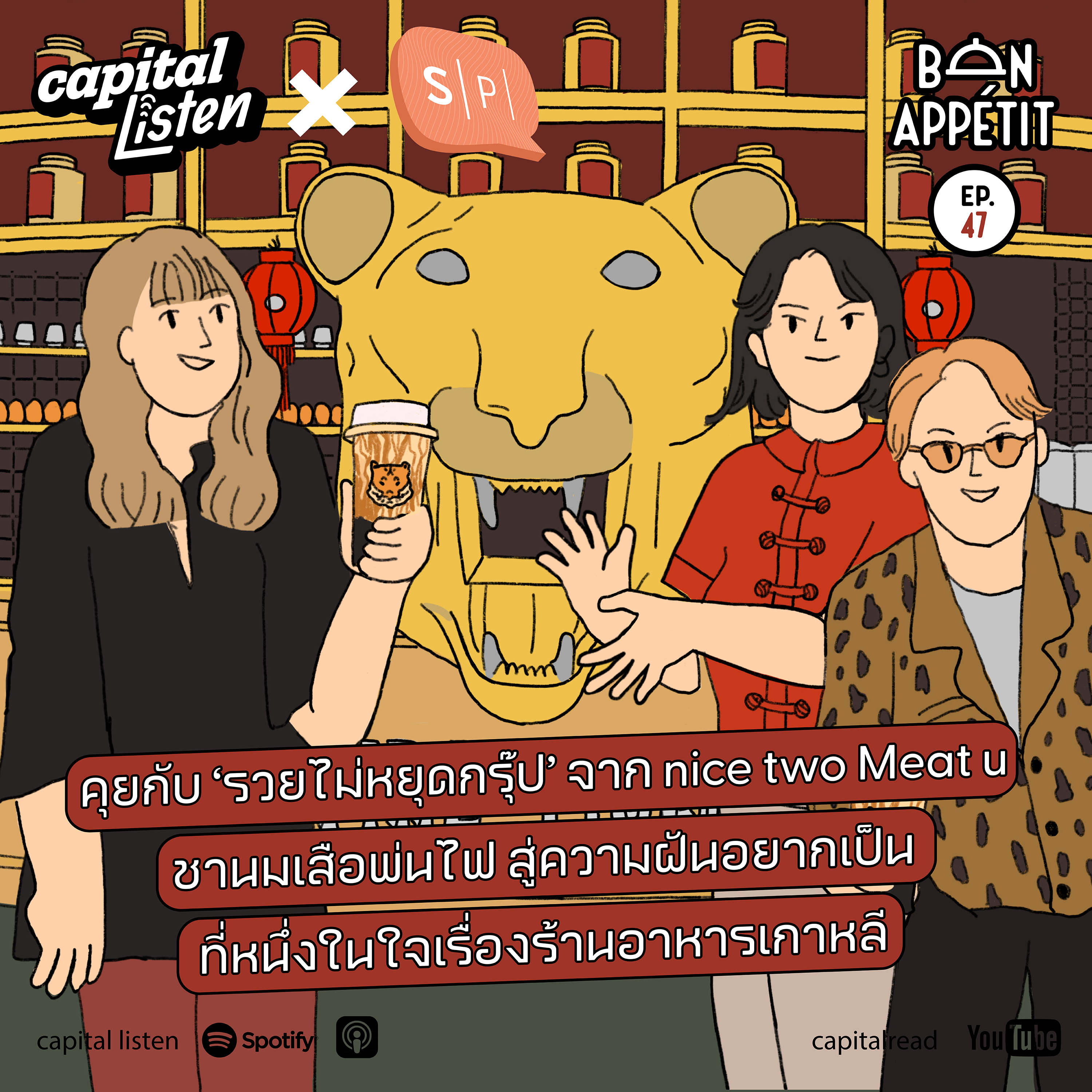 สองสามปีก่อนปิ้งย่างเกาหลีเรียกได้ว่าบูมอย่างมากในวัฒนธรรมการกินของคนไทย ทำให้มีร้านปิ้งย่างเกาหลีเกิดขึ้นจำนวนมาก และหนึ่งในนั้นก็คือ nice two Meat u ที่เป็นต้นตำรับปิ้งย่างเกาหลีแห่งแดนกิมจิ นอกจากนี้ยังมีกระแสความนิยมชานมไข่มุก โดยเสือพ่นไฟเรียกได้ว่าเป็นชานมที่ติดท็อปแบรนด์ยอดนิยมของตลาดชานม ซึ่งปิ้งย่าง nice two Meat u และชานมเสือพ่นไฟ ทั้งหมดเป็นร้านภายใต้บริษัท ‘รวยไม่หยุดกรุ๊ป’ ที่เป็นอาณาจักรร้านอาหารและเครื่องดื่มสไตล์เกาหลีของ ชุติมา เปรื่องเมธางกูร และ นันทนัช เอื้อศิริทรัพย์ แล้วสองสาวผู้อยู่เบื้องหลัง ‘รวยไม่หยุดกรุ๊ป’ มีเคล็ดลับการทำธุรกิจว่าด้วยแนวคิดใด ไปหาคำตอบพร้อมกันได้ใน Bon Appétit EP.47 ตอนนี้