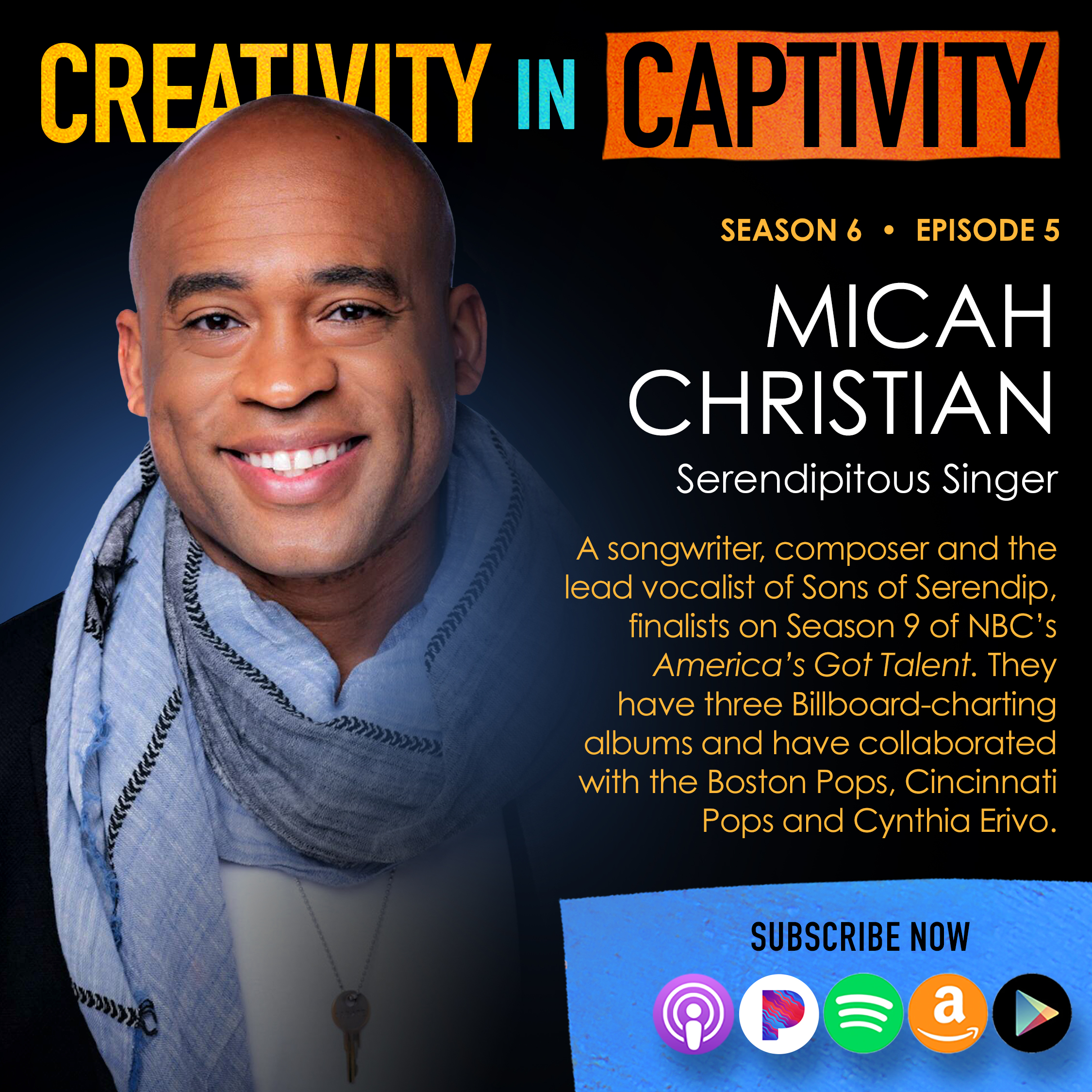 Micah Christian is an artist passionate about storytelling, composing, and performing music that supports, enhances, and creates "moments." He is the co-founder and lead vocalist of America's Got Talent Finalist, Sons of Serendip. Career Highlights include collaborations with the Boston Pops, Cincinnati Pops, Cynthia Erivo, performing for the Creative Arts Emmy Awards, Oprah Winfrey's 2020 Vision Tour closing celebration. Most recently, Sons of Serendip was selected as one of the artists to represent the United States at the Dubai Expo 2020. Micah is currently the Vice President of NAPAMA (North American Performing Arts Agents and Managers). Micah has a Master of Divinity from Boston University School of Theology. Through music, he hopes to spread love and help build a better world.
