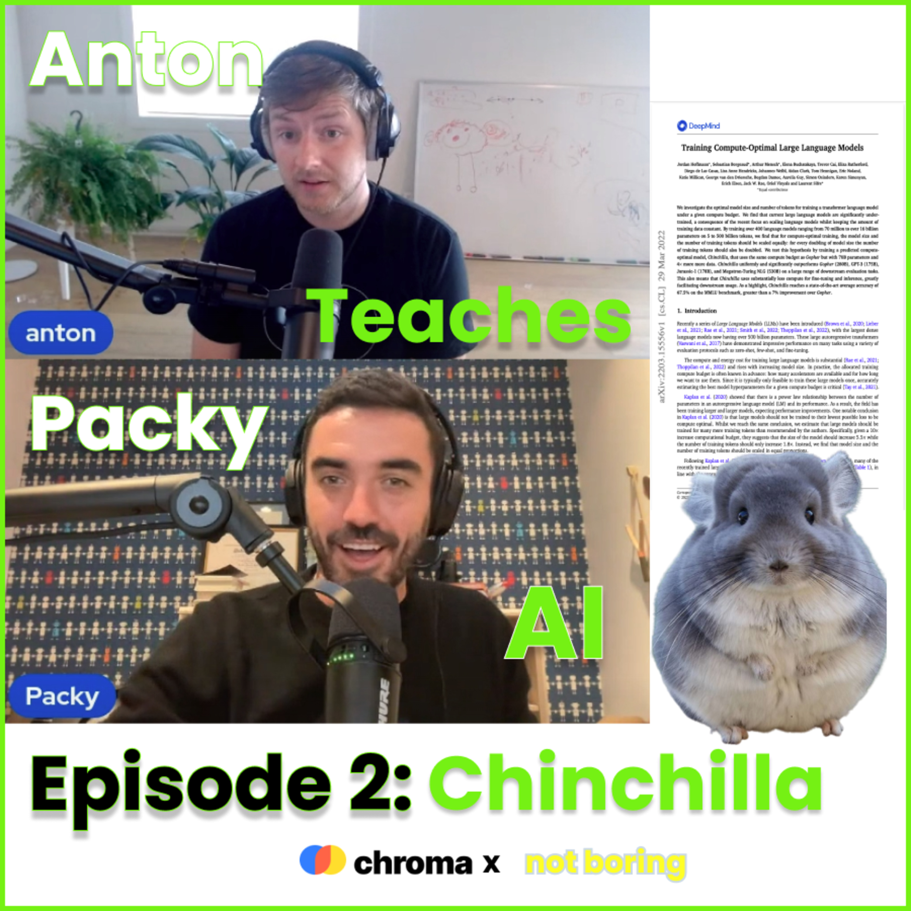 We're back! In Episode 2, Anton Teaches Packy about Deepmind's March 2022 paper, Training Compute-Optimal Large Language Models, or as it's more commonly known, Chinchilla. Prior to Chinchilla, the best way to improve the performance of LLMs was thought to be by scaling up the size of the model. As a result, the largest models now have over 500 billion parameters. But there are only so many GPUs in the world, and throwing compute at the problem is expensive and energy intensive. In this paper, Deepmind found that the optimal way to scale an LLM is actually by scaling size (parameters) and training (data) proportionally. Given the race for size, today's models are plenty big but need a lot more data.