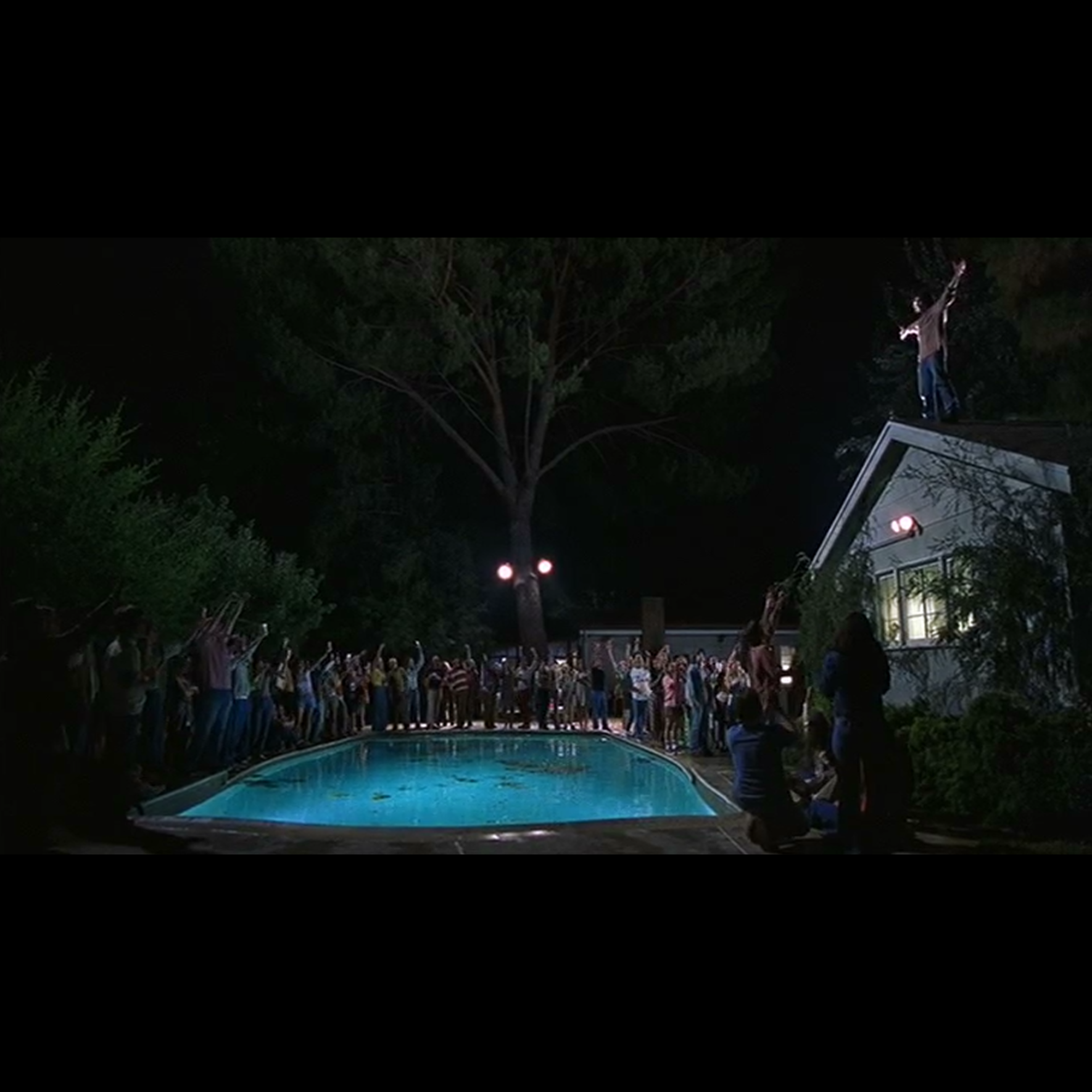 The fifty-eighth minute starts with Russell finishing drinking a beer with acid in it and ends with the partiers cheering for Russell.