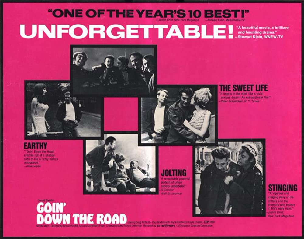 Goin' Down the Road stars Doug McGrath, Paul Bradley, Jayne Eastwood and Cayle Chernin; directed by Donald Shebib.