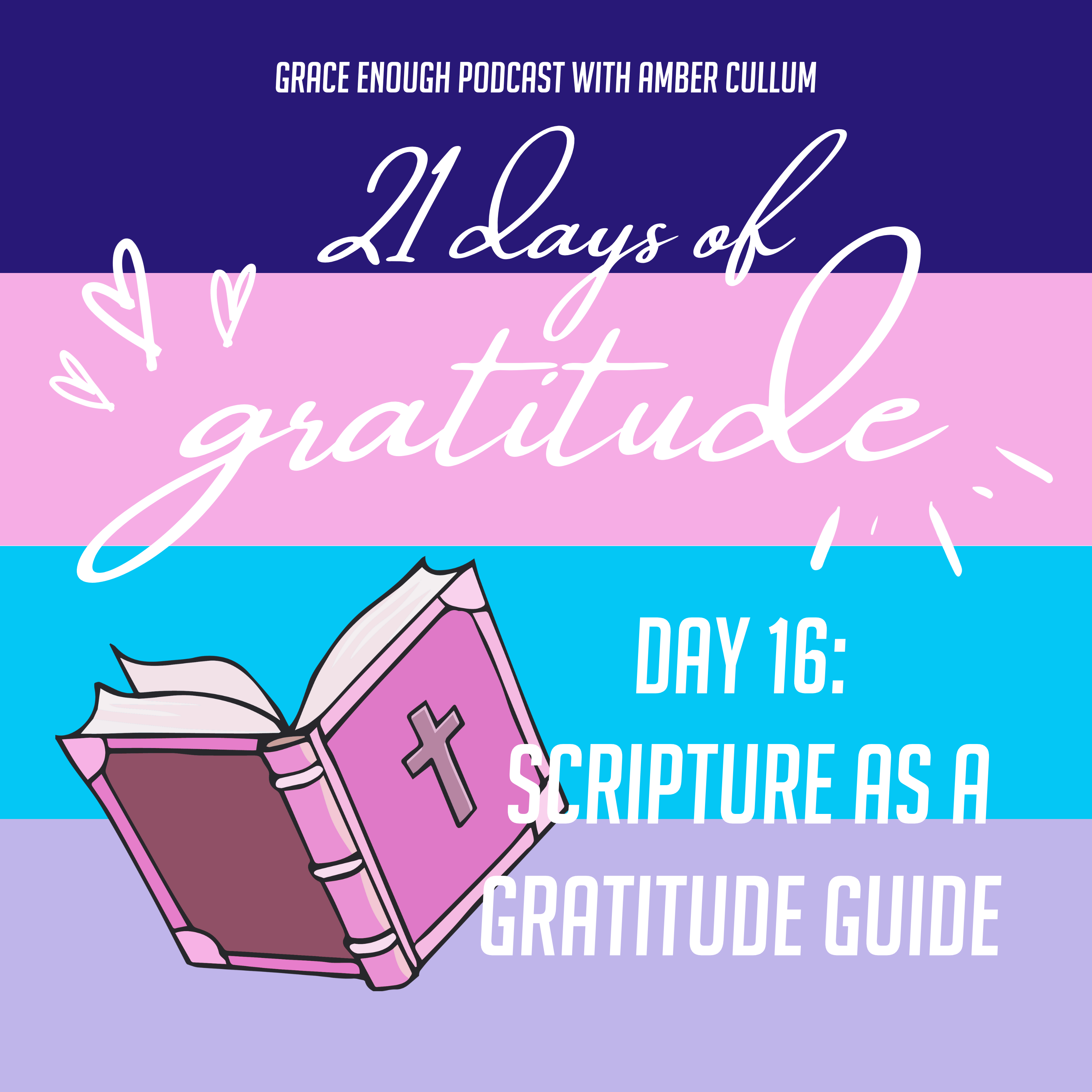 Welcome to Day 16 of the 21 Days of Gratitude on Grace Enough Podcast. In this episode, Amber Cullum explores the concept of using scripture as a guide for gratitude.